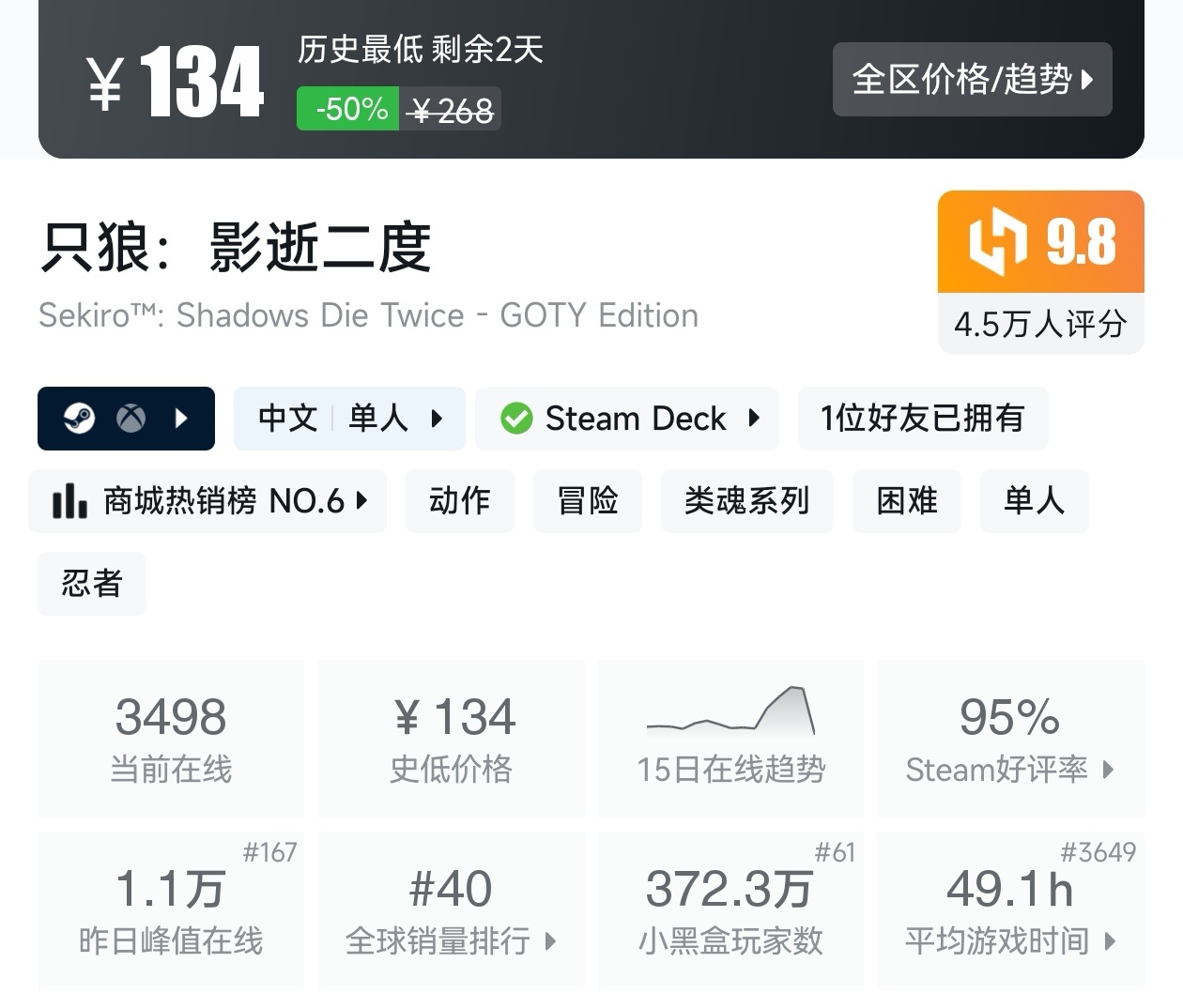 7.《只狼:影逝二度》