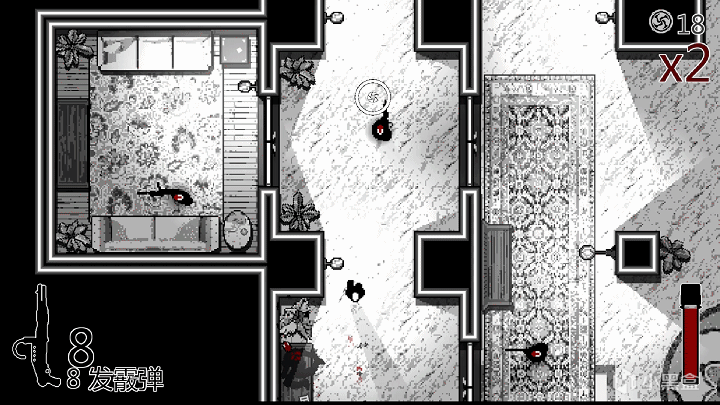 简评:类似《迈阿密热线》,但不会一击即死的肉鸽射击游戏。玩家需要前往一座神秘豪宅的深处,在子弹时间的加持下,运用五花八门的枪械杀死所有挡在眼前的敌人,最终救出心爱之人。
