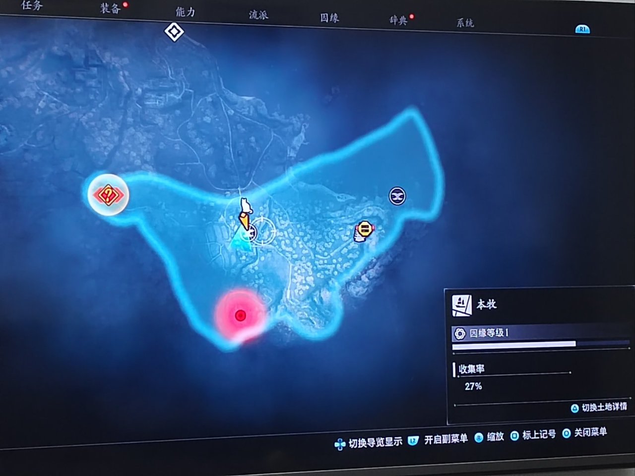 玩法就是标准的清单开放世界,每章一个大地图,每个大地图有很多小区域,每个区域内有很多据点,小boss,拍照点,箱子,神社,小猫等等收集品来填充内容,地图上还会显示区域收集进度,作为一个罐头战神,一看这个地图就知道对味儿了。收集反馈还不错,找猫,找拍照点能换一些技能点,神社也有技能点,开箱子和打据点,打小boss都会给一些比较好的装备,区域全收集之后也会给一些奖励,加上浪人跑步也没什么体力限制,一个区域地图也不大,还有滑翔翼,跑图效率非常高(我在龙信过的什么苦日子),还是很有动力做全收集。