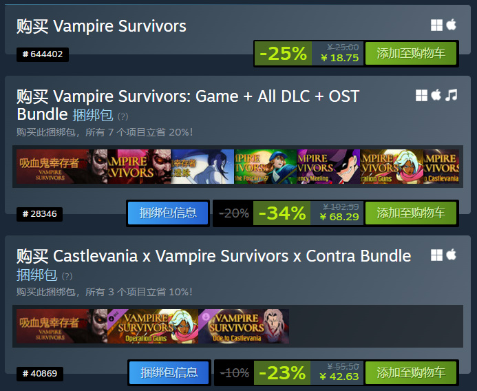 作为肉鸽游戏中,独成一派的《吸血鬼幸存者》也在秋促迎来了打折,7.5折,原25现18.75,开通了XGP的玩家也能直接游玩。
