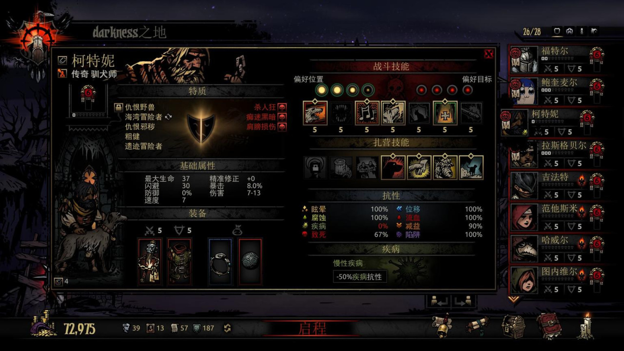 扎营时建议使用老兵的群体加伤,狗哥的侦查和防夜袭。
