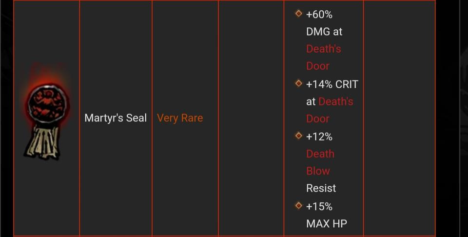 濒死流,配合上破盾的保命技能能打出爆炸伤害。PS:带一个精准饰品,死门会降角色精准