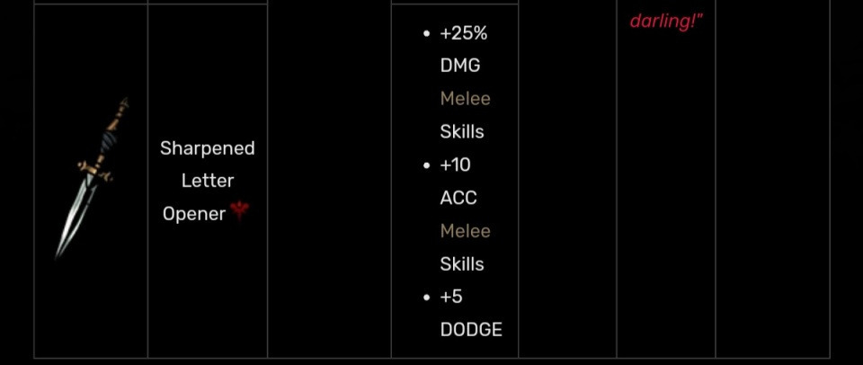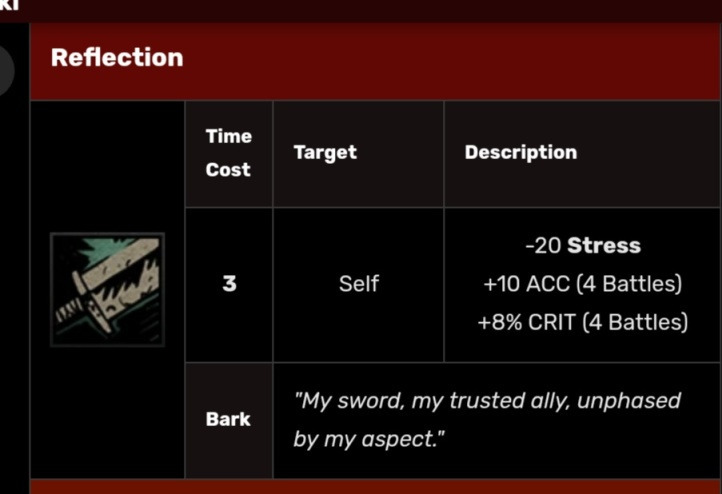 水笔的暴击加成配合上决斗突刺自带的反击暴击加成可以使强盗的暴击率保持在33左右,配合上扎营技能和专注戒指,暴击率甚至高达50%(貌似比这还高点?),反击输出非常高。而且当压力怪使用加压技能却被反击打死时,人物是不会加压力的,在无光情况下相当于少了30点压力,从某种意义上来说,配合上加暴击的饰品,决斗突刺是最强的减压技能。