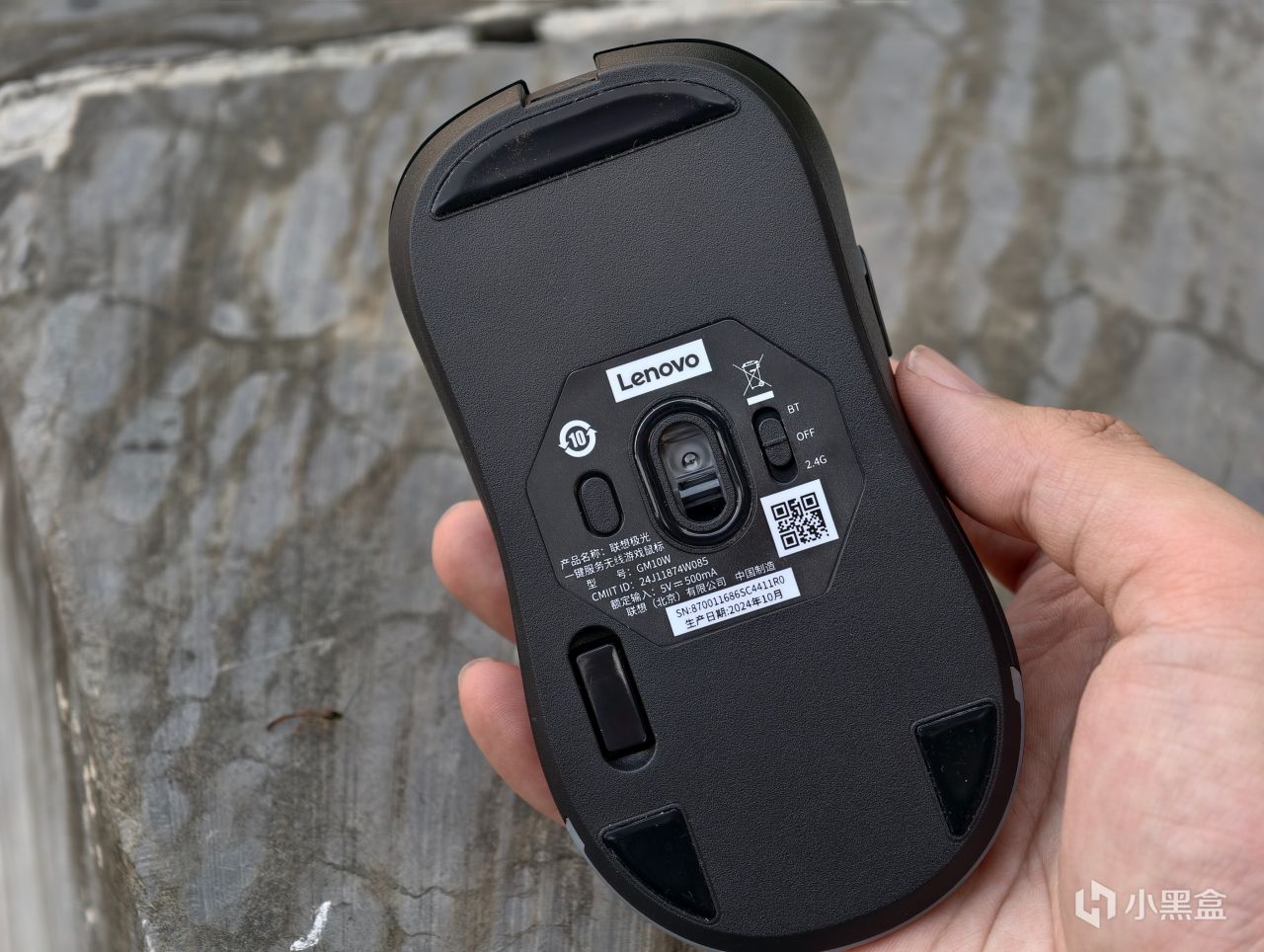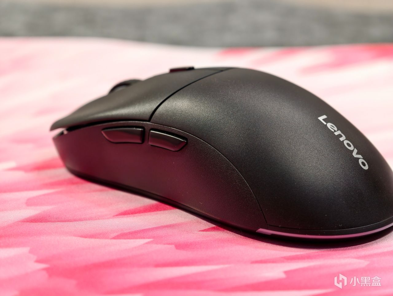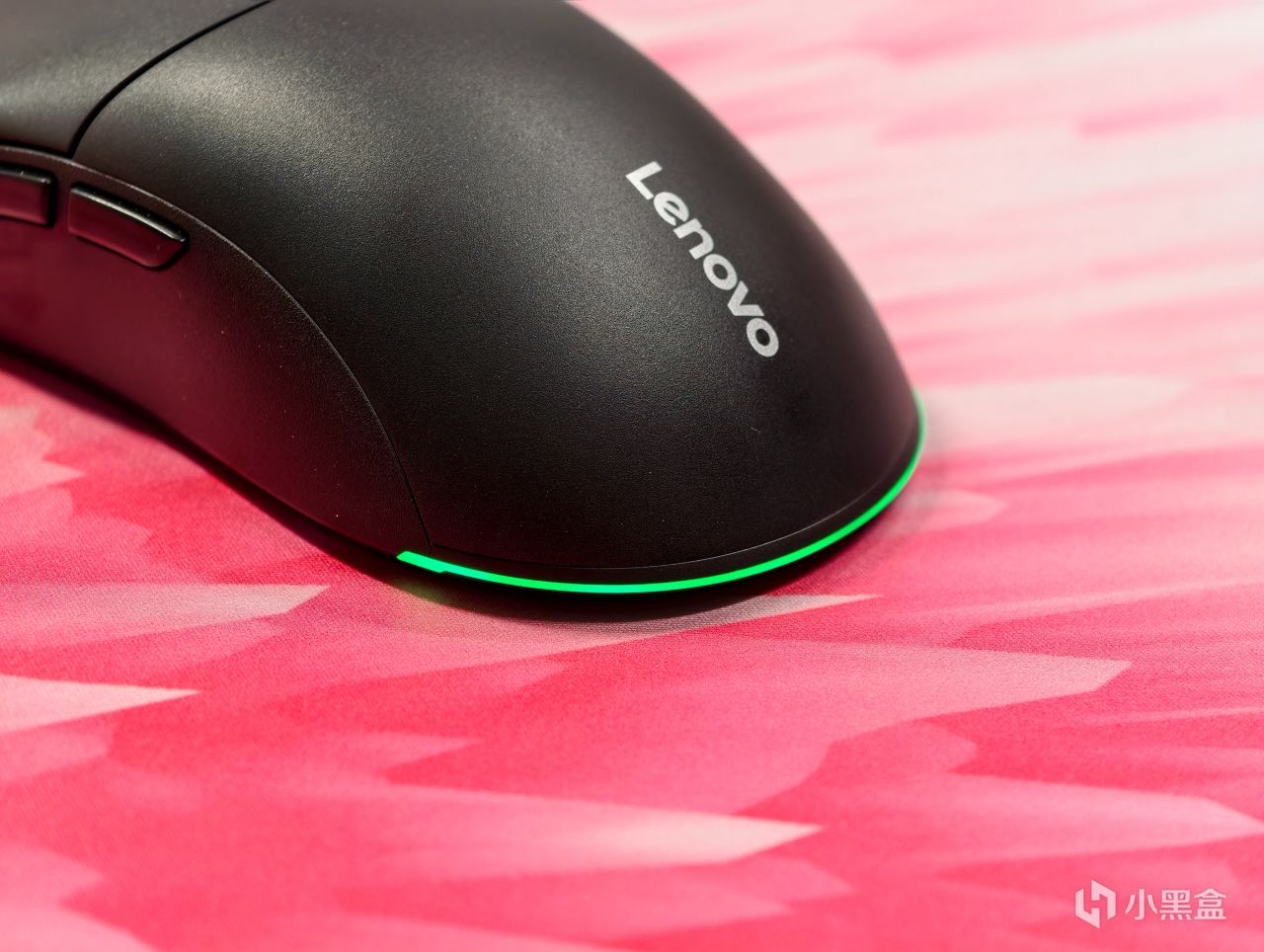 先來聊聊外觀,黑色的霧面磨砂外殼(無塗層),打上了聯想的Logo,乍一看,的確是偏向辦公鼠標的設計。