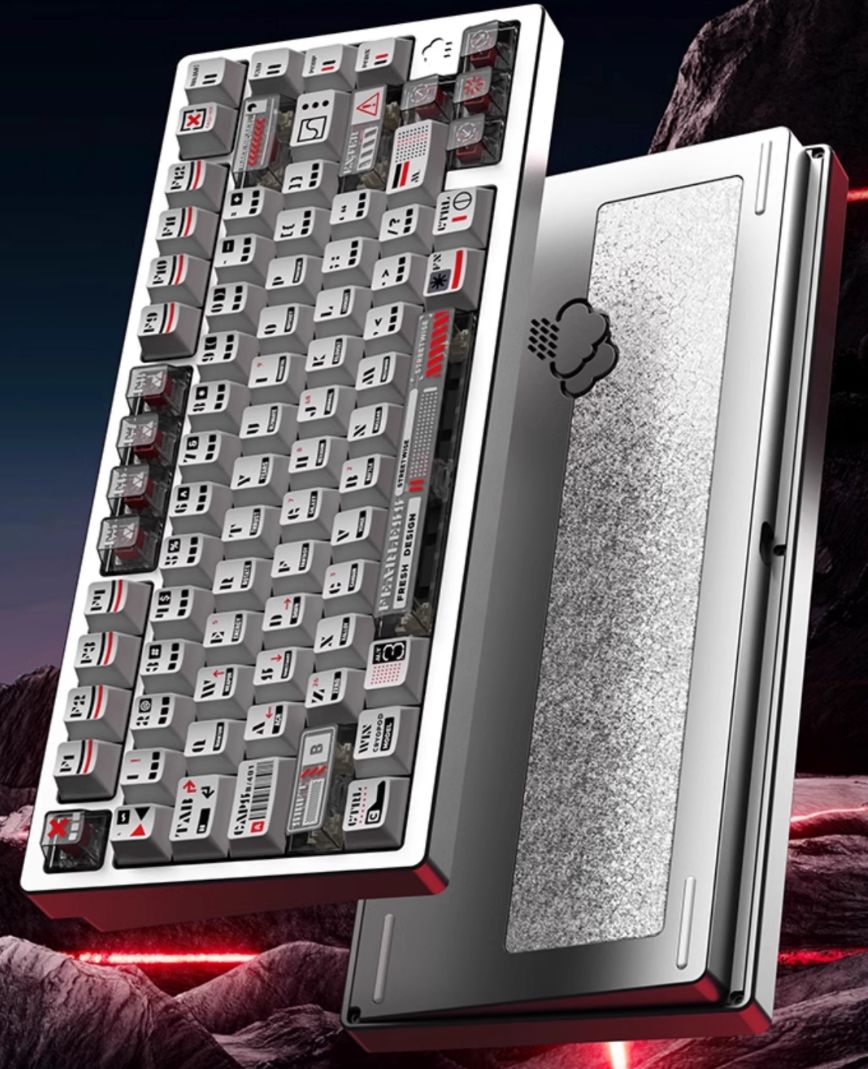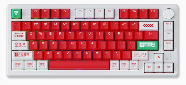 这款键盘的亮点在于其磁轴的稳定性和性价比,支持自校准,天空轴和RT轴0.1mm精度适合大多数游戏玩家的需求。采用75%配列,既能提供舒适的输入体验,又能保持较为紧凑的体积,非常适合桌面空间有限的玩家。另外外形涂装多样,战神版颇有几分EVA的风格。