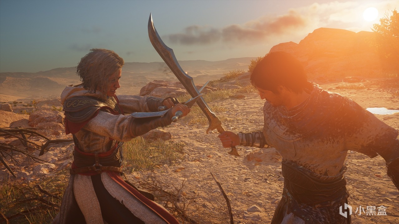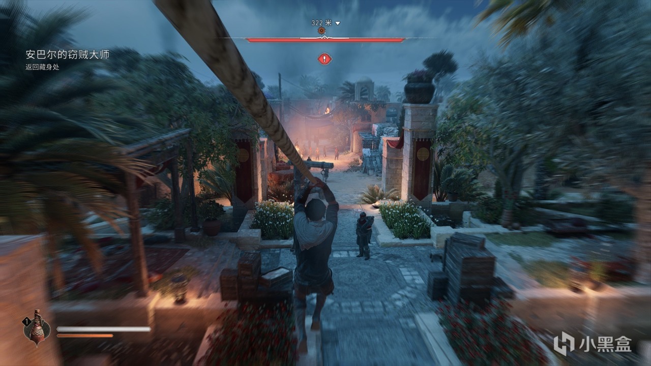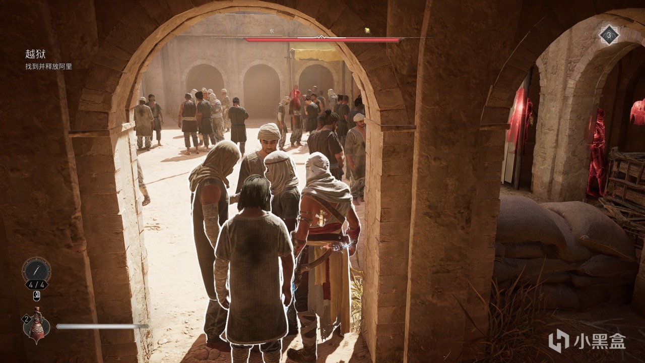 而遊戲其他玩法的設計也跟“門閂”的問題比較類似:在削減了大量內容以後,小體量的《刺客信條:幻景》缺乏深層次內容的構築和變化,沒有RPG要素以及相對應的數值成長體系雖然更簡潔明瞭,但匱乏的戰鬥系統以及對玩家戰鬥限制非常大的精力條設置讓戰鬥體驗也一樣枯燥無趣(精力條的設置堪稱遊戲最大的敗筆,你敢想象巴辛姆揮了幾刀之後就只能在原地乾瞪眼(既不能繼續攻擊也沒有體力可以翻滾躲避)麼?),地圖上據點的構築也同樣千篇一律,而潛入的玩法也相當有限(比起源多一點,但相比奧德賽那上天入地式的暗殺體驗或者兄弟會那種精巧的關卡設計,實在是落了下乘)。