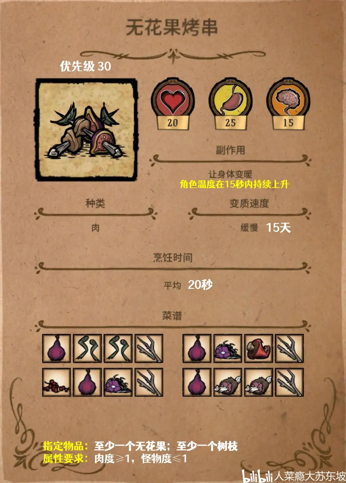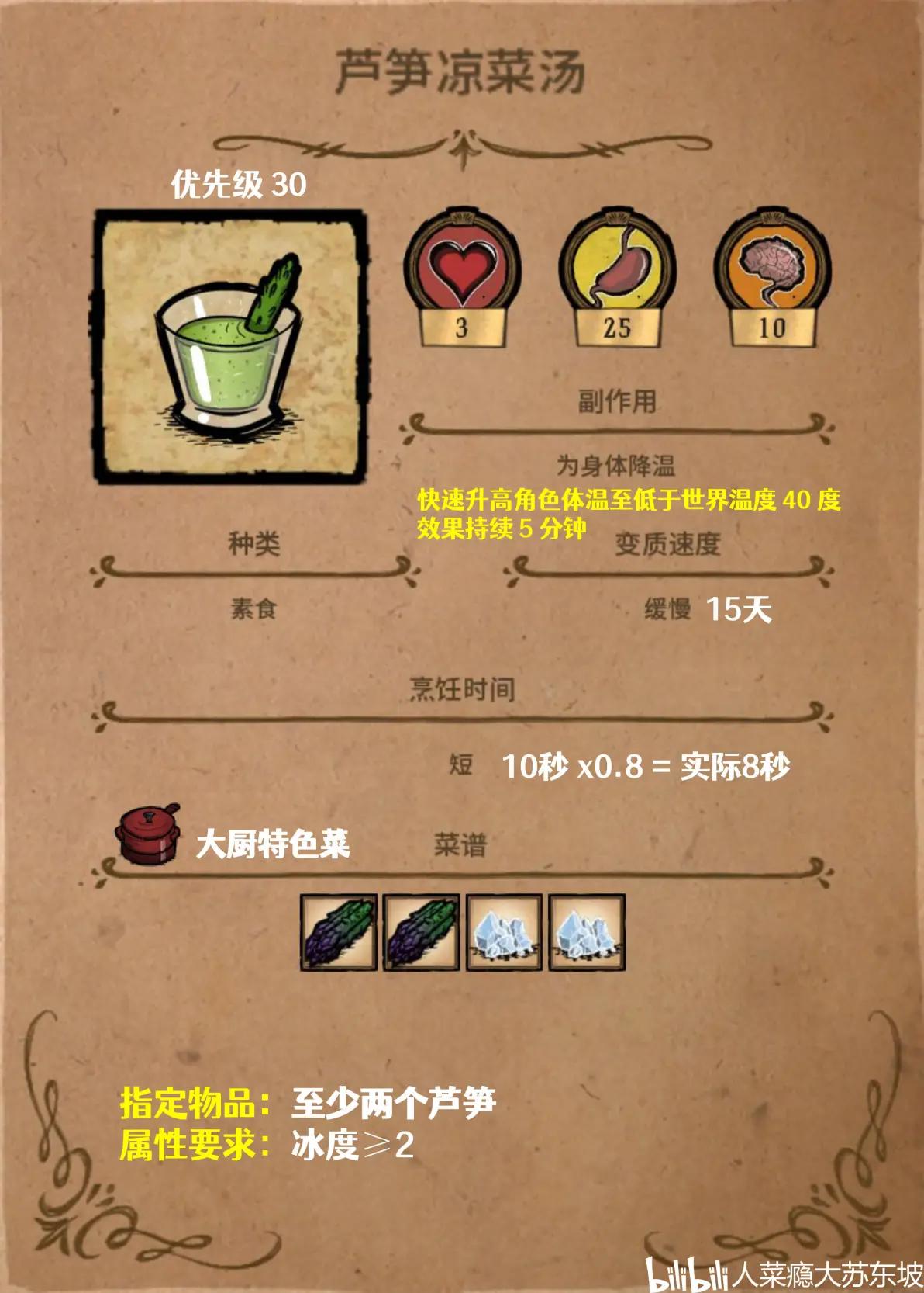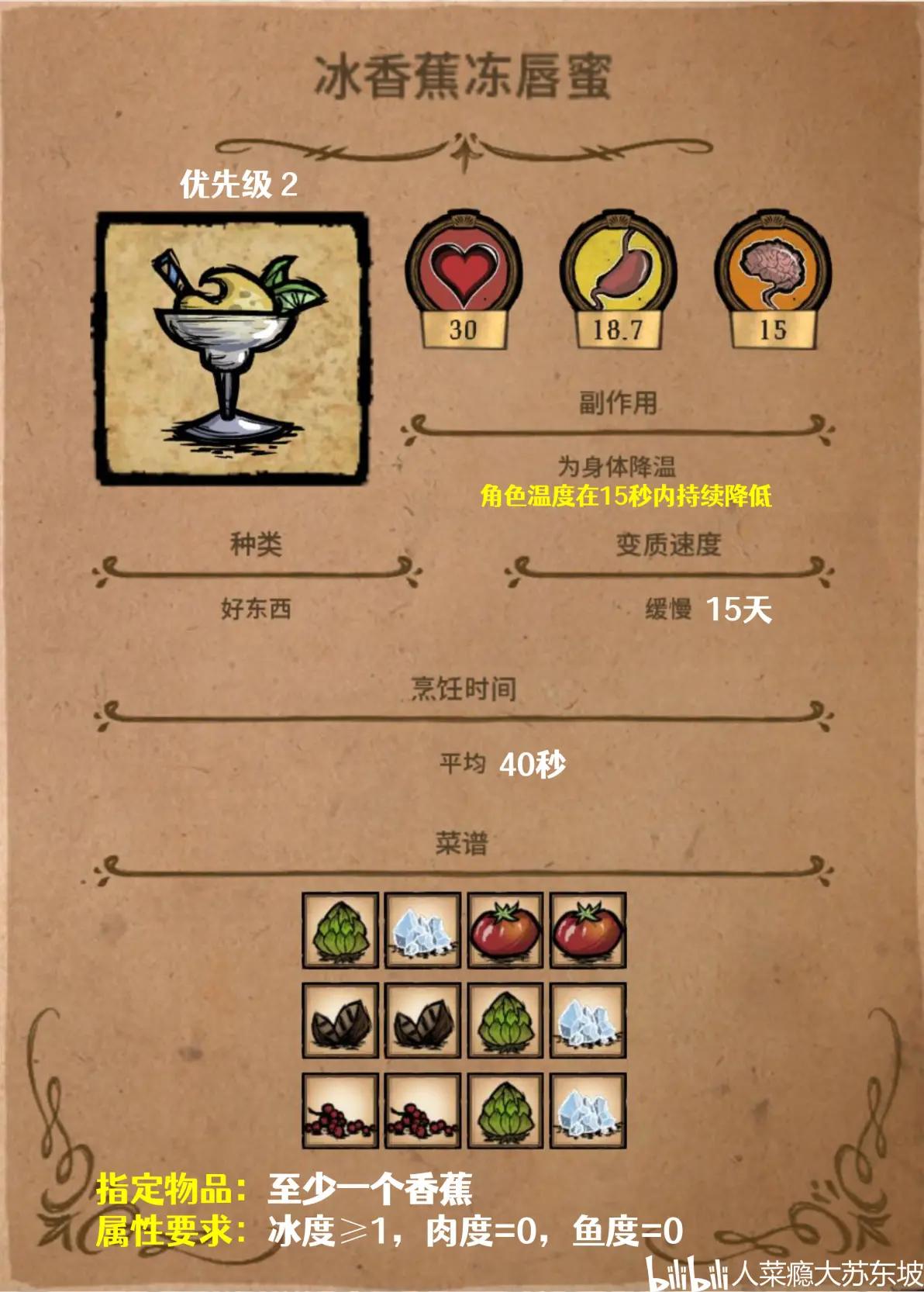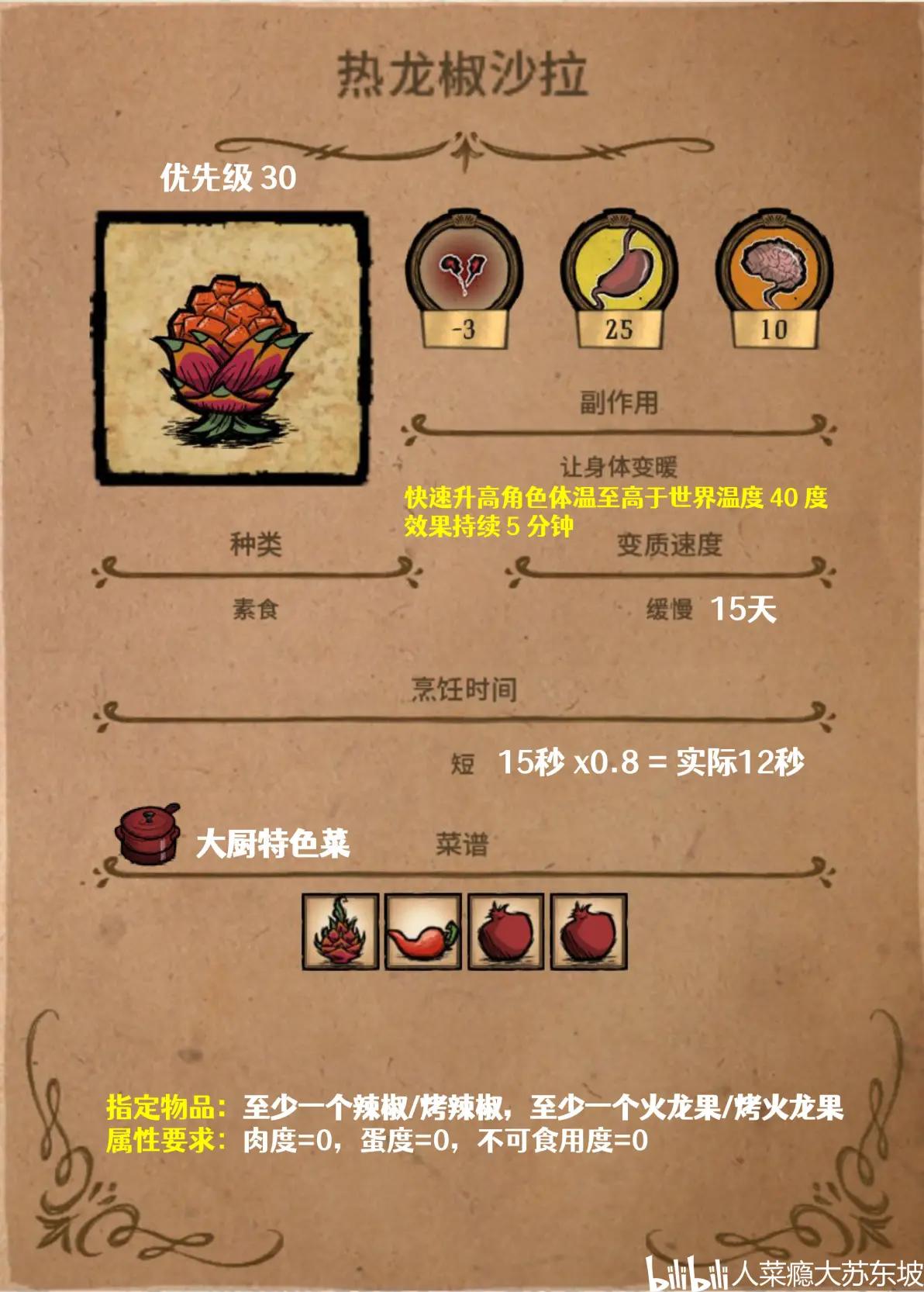 食用後可以給角色提升體溫或降低體溫的料理和食物,在冬季和夏季可以用來平衡溫度。