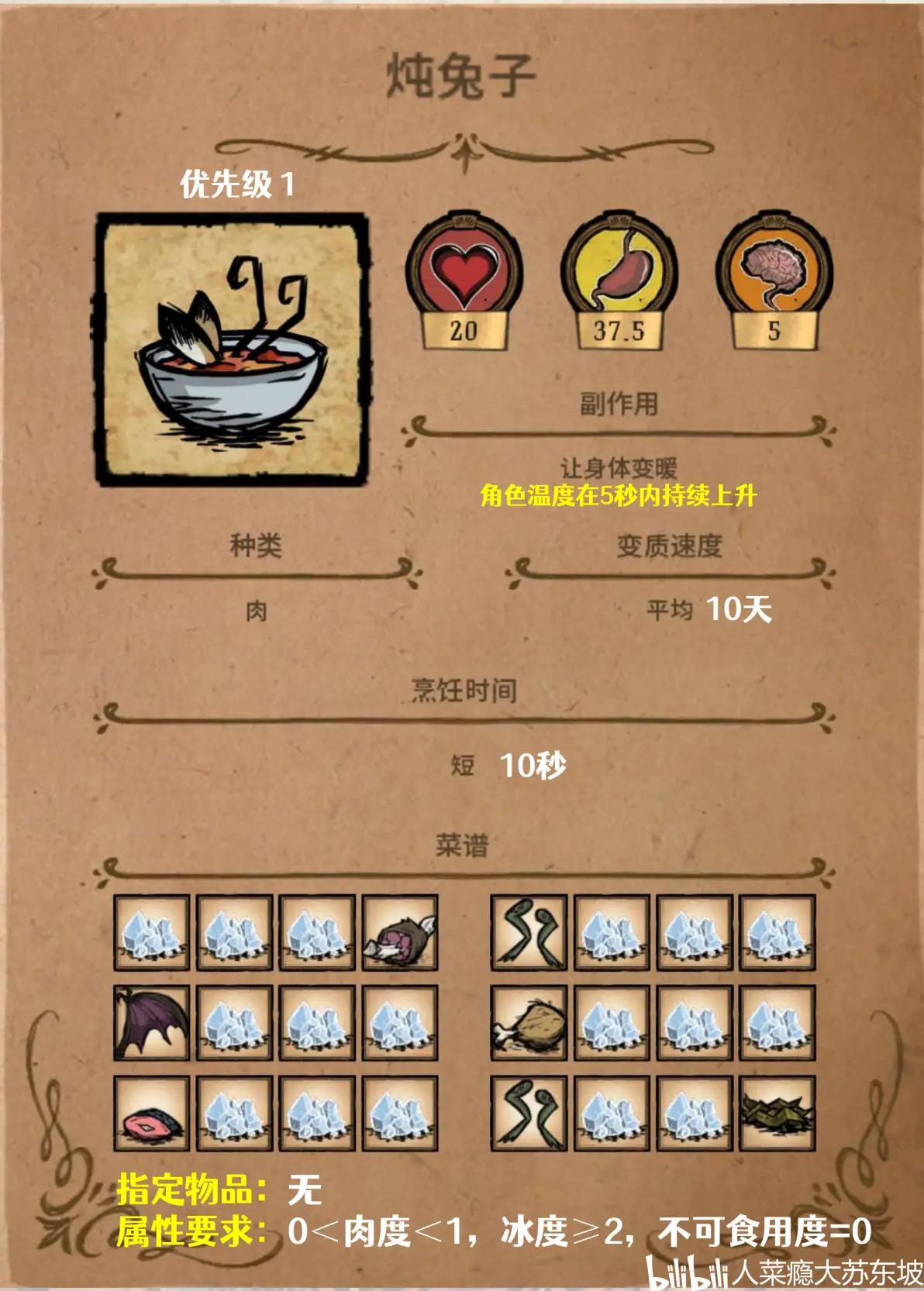 燉兔子:食材要求不高,冬天也可以大量開採囤冰,不過三維回覆一般。
