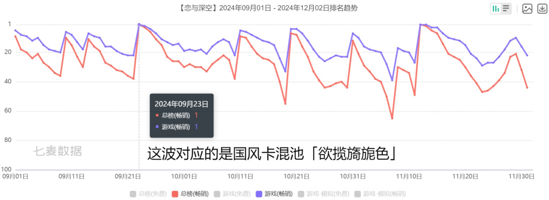 《戀與深空》先前9月、11月都曾衝到暢銷總榜榜首