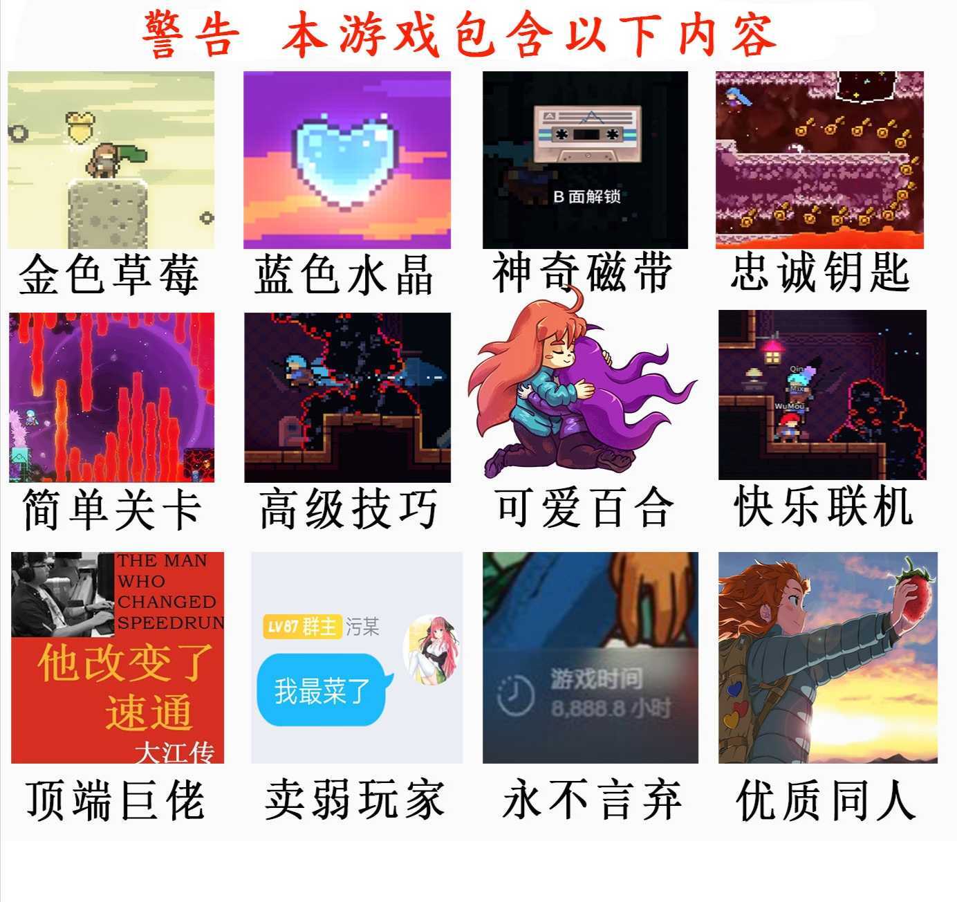 在遊玩蔚藍的過程中,玩家和主角一步一步向上攀登,一點一點磨鍊技術,隨着心態的平靜,隨着技術的成熟,到最後,困難就不再是阻擋玩家前進的障礙了。