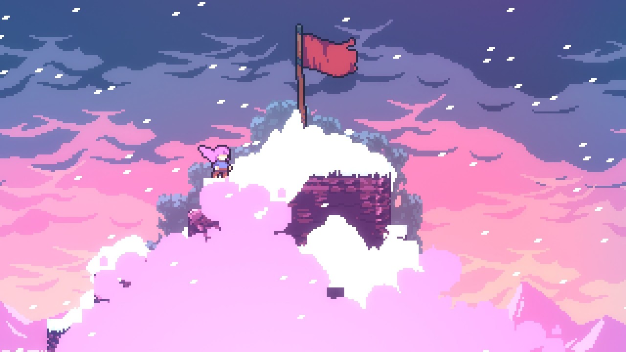 蔚藍是一款像素風的平臺跳躍遊戲,玩家扮演的主角從剛開始的漫無目的爬山,但最後接納自我之後開始挑戰山頂。劇情隨着玩家的前進而一點點推進。