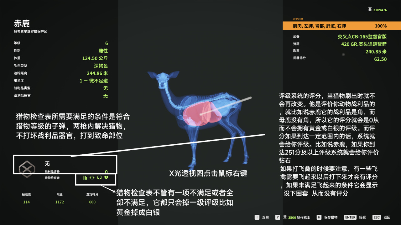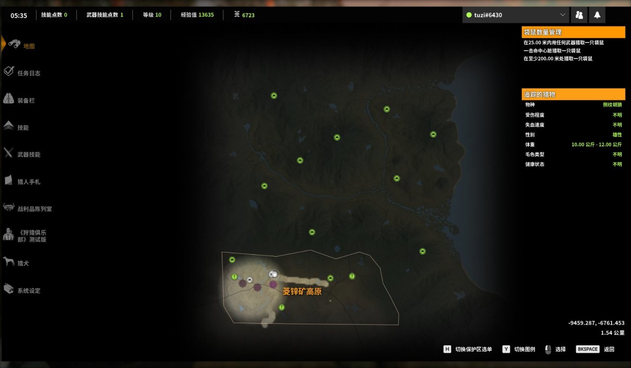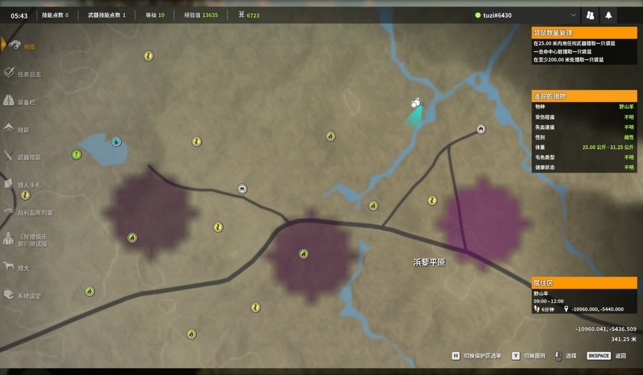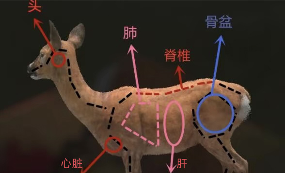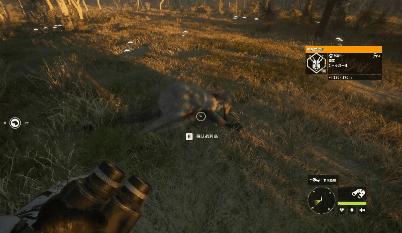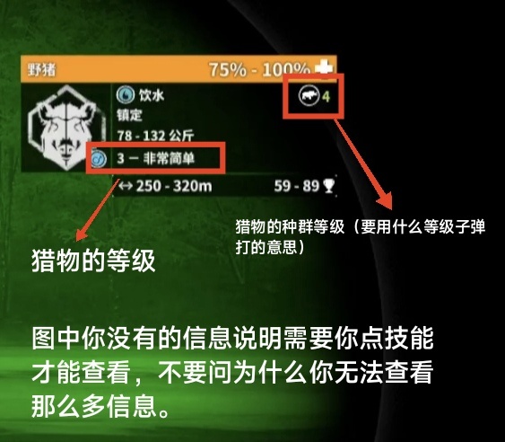 还有一种办法就是压力区,一般来说只要猎物受致命伤后死亡我们就可以在压力区的范围找到猎物。压力区太大太红这个区域会不刷猎物,不过等一段时间就好,所以不要一直在一个地方薅羊毛。