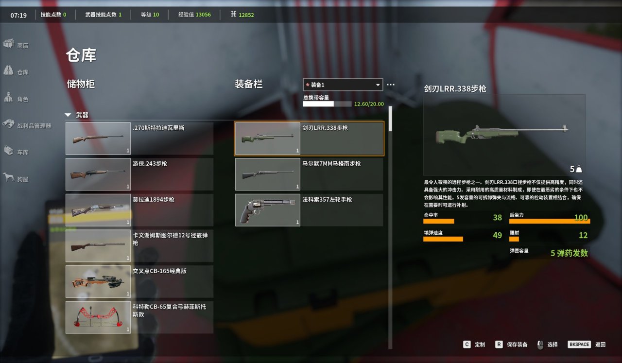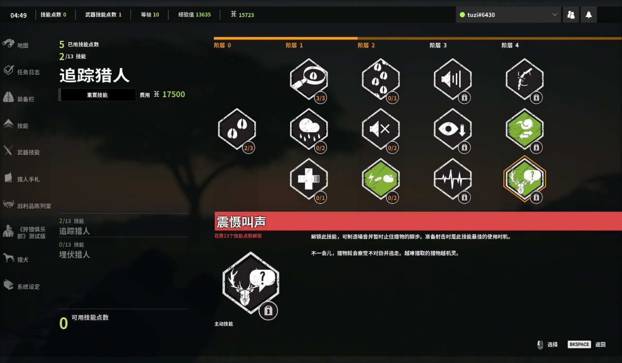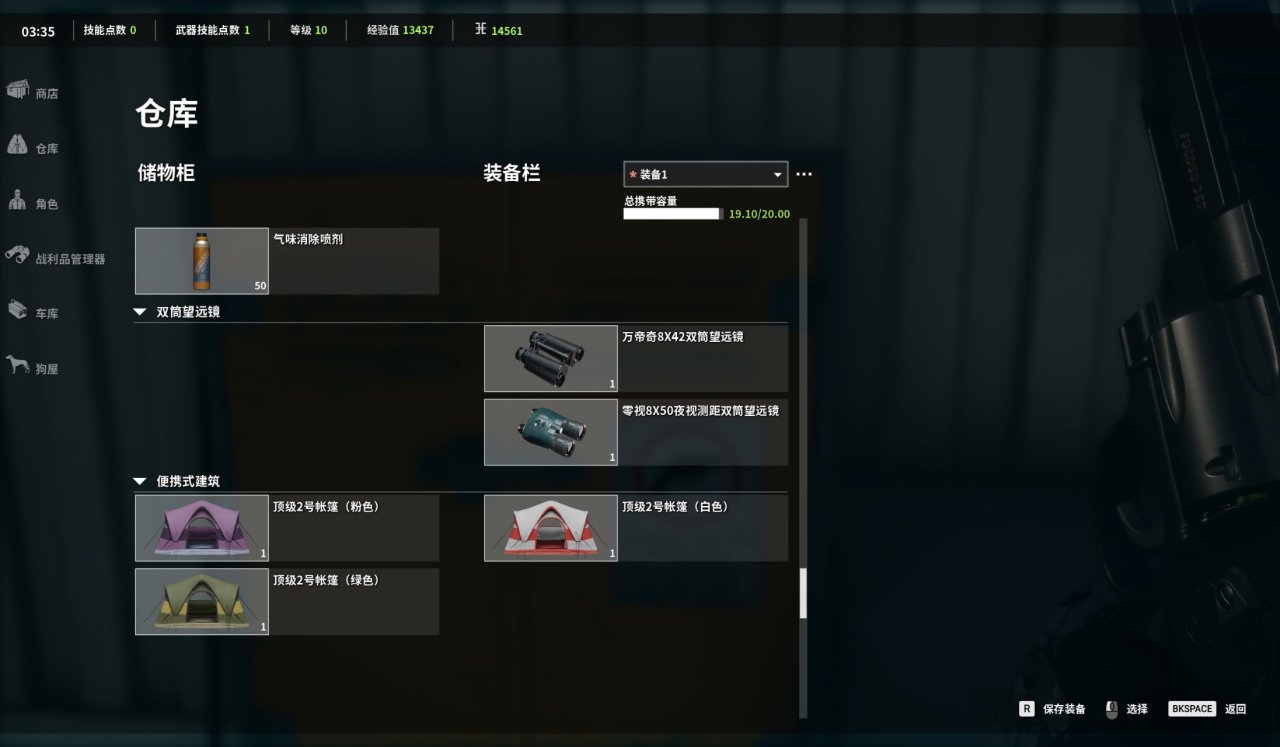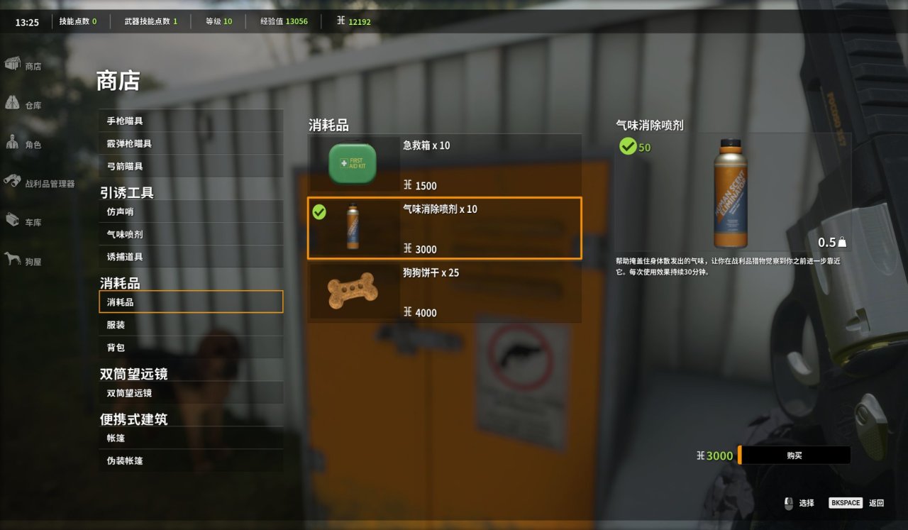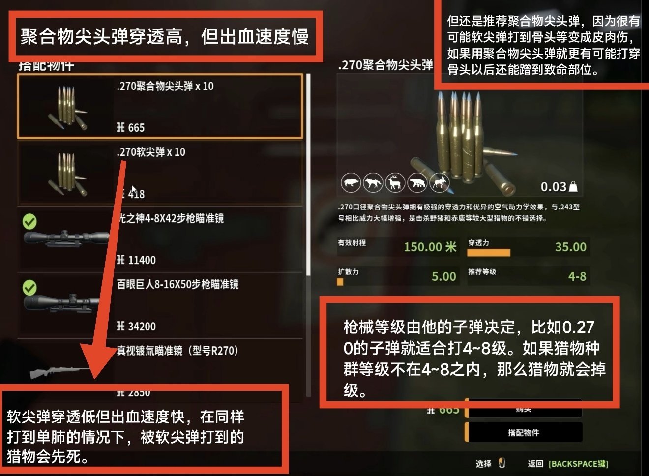 顺带一提下面这几个东西是需要提高狩猎等级然后用技能点解锁的,所以抓紧狩猎吧,同理枪械也是一样。