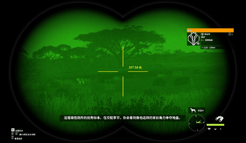 锁定猎物后悄悄的摸到一个合适的地方,待猎物也稳定后直接一枪搞定。