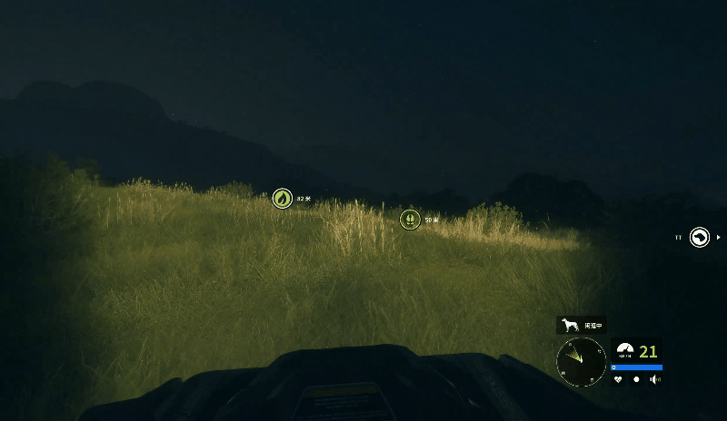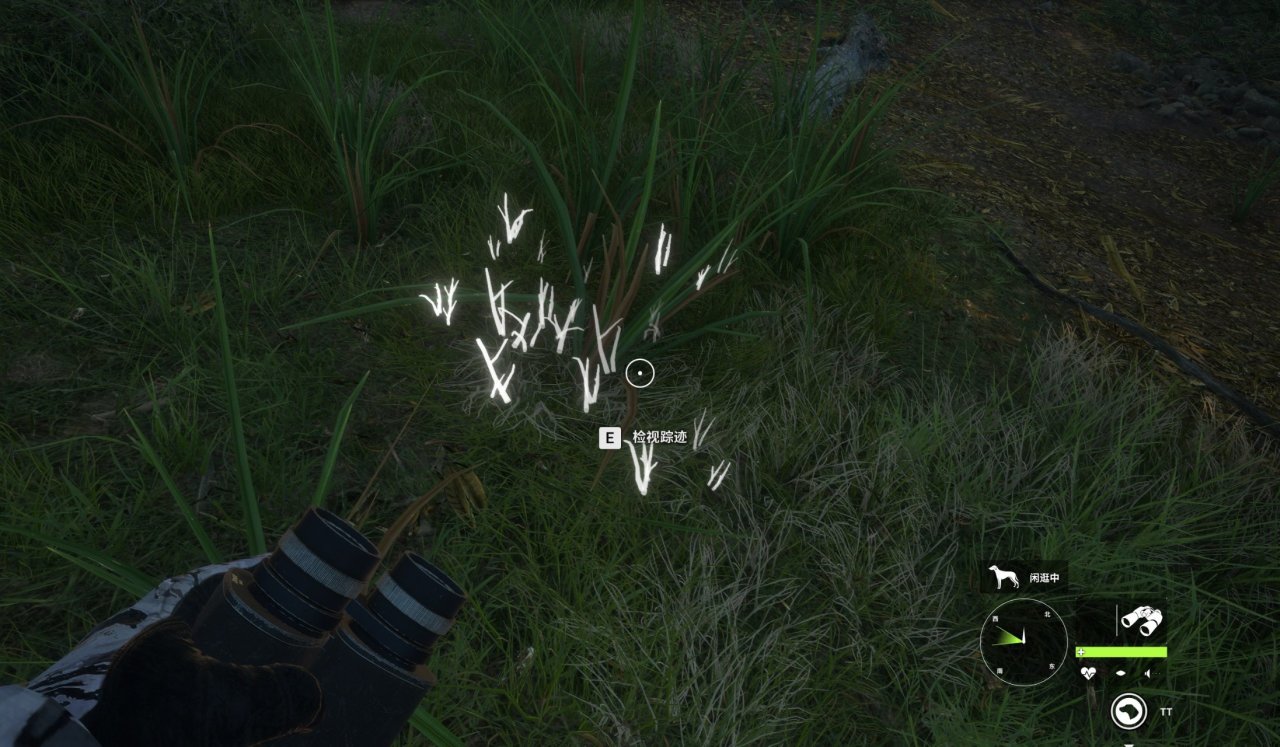 又或者看猎物留下的踪迹,比如脚印👣啊,粪便之类的,追寻着这些踪迹去寻找猎物,顺带一提夜晚除了夜视只有开灯才能看得到踪迹哦。