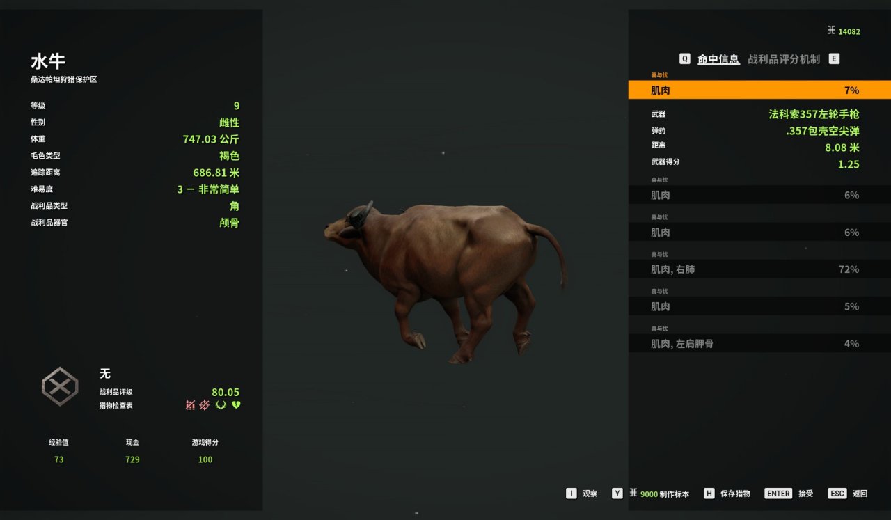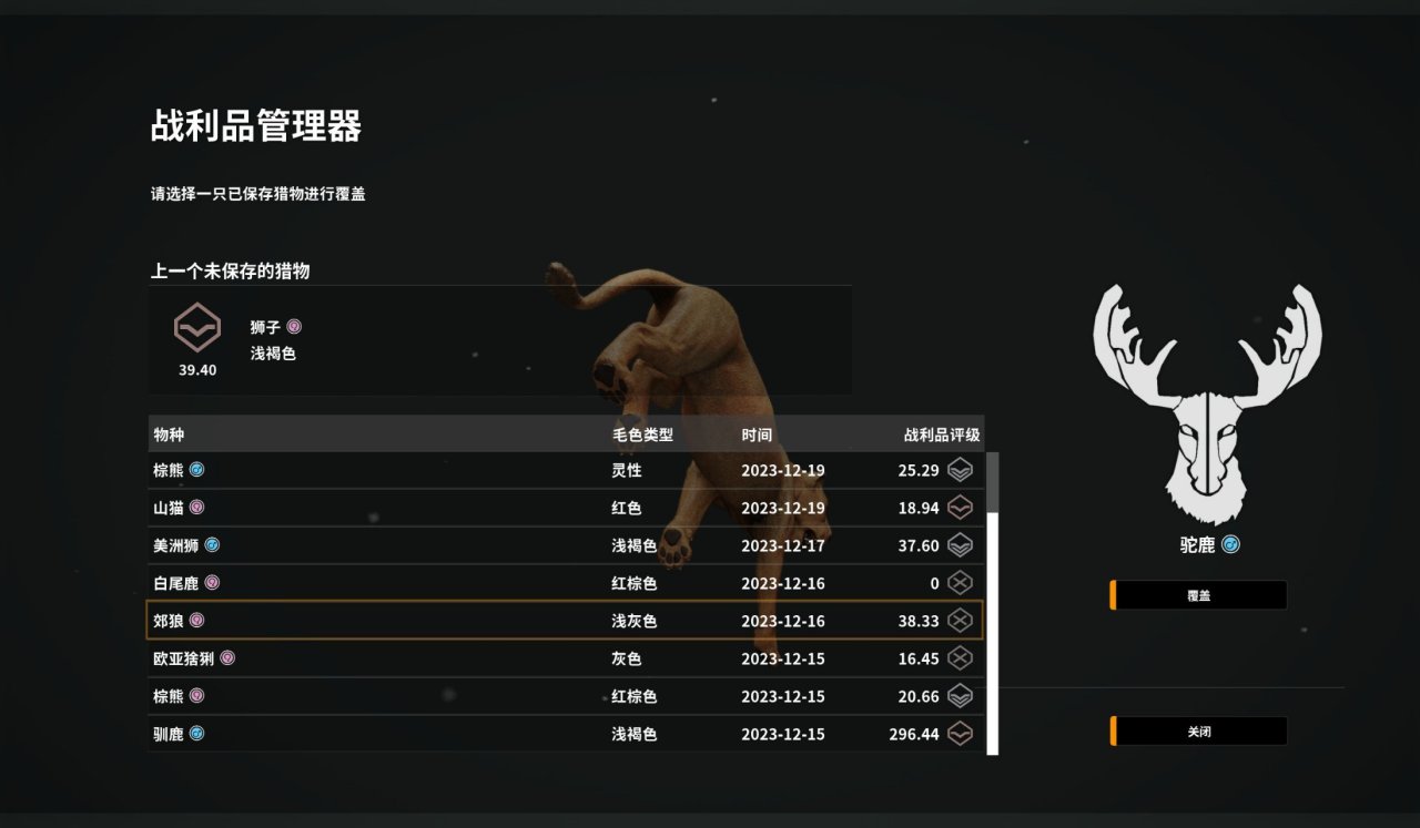 打这个游戏我更喜欢的是享受这个过程然后再收获它的结果,无目的溜达,然后随机遇到动物,然后追寻它,狩猎它。我不在乎这个猎物符不符合它的等级,枪械符不符合,子弹符不符合,打没打中要害,我只找到想打的猎物然后把它狩猎成功,最后制成标本放到我的陈列室里保存起来。