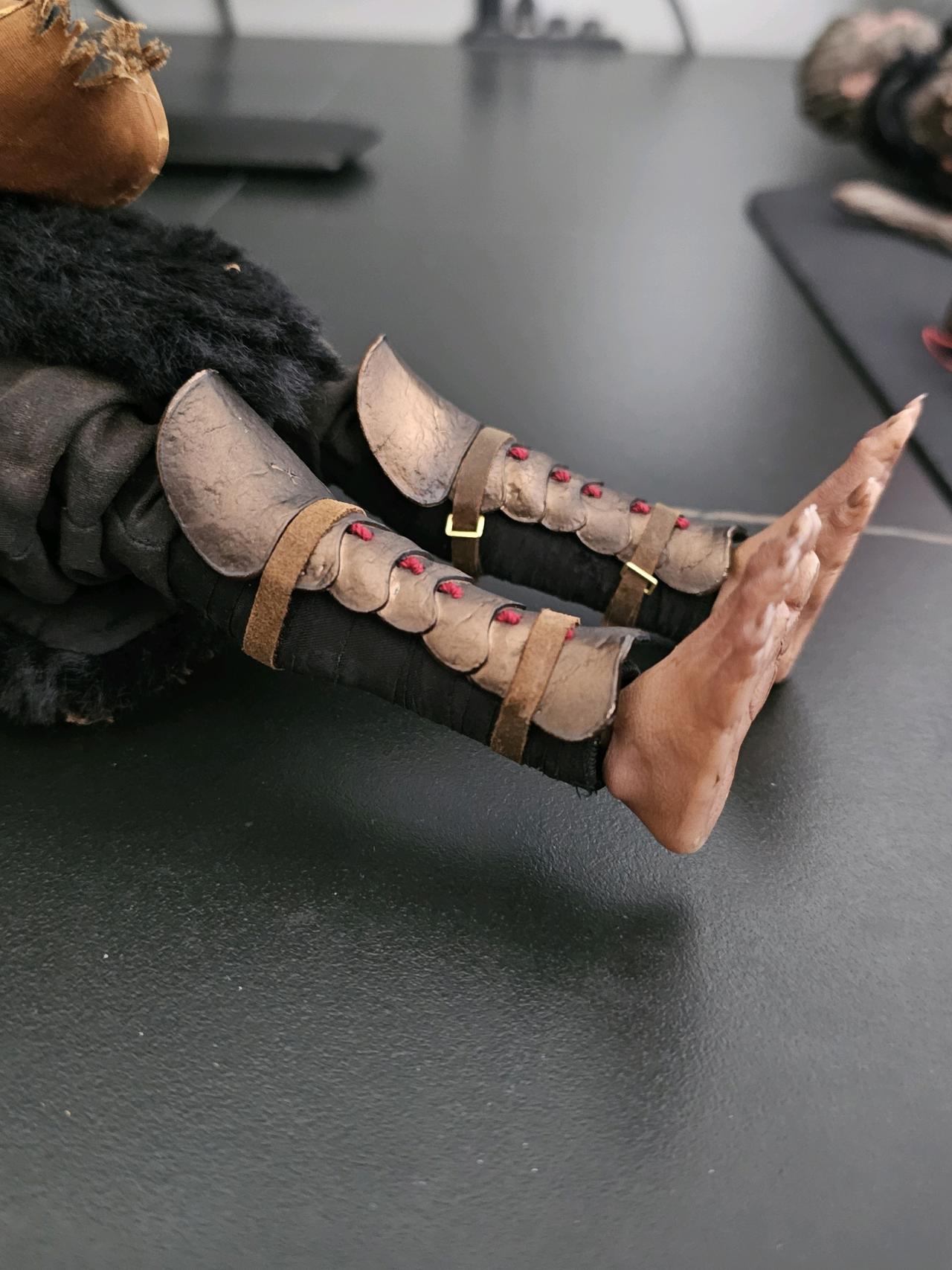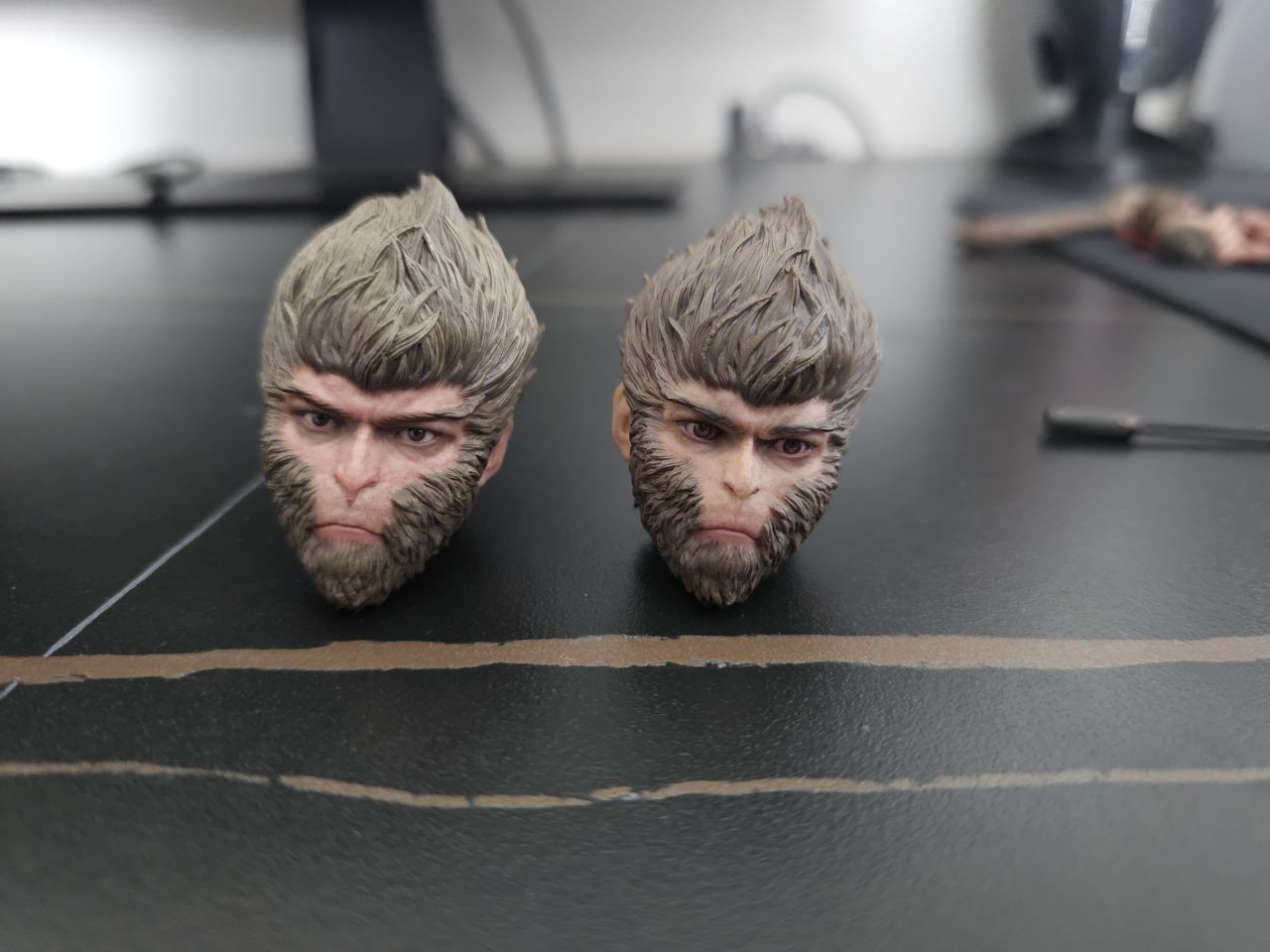 視頻中的天命人人偶頭部比例略小,且人偶脖子關節很鬆,面部細節少,精細度也差。