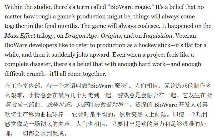 因爲在質量效應:仙女座,和聖歌這倆項目初期,他們也信心滿滿,覺得現在不管多亂,在發售前一定會船到橋頭自然直。