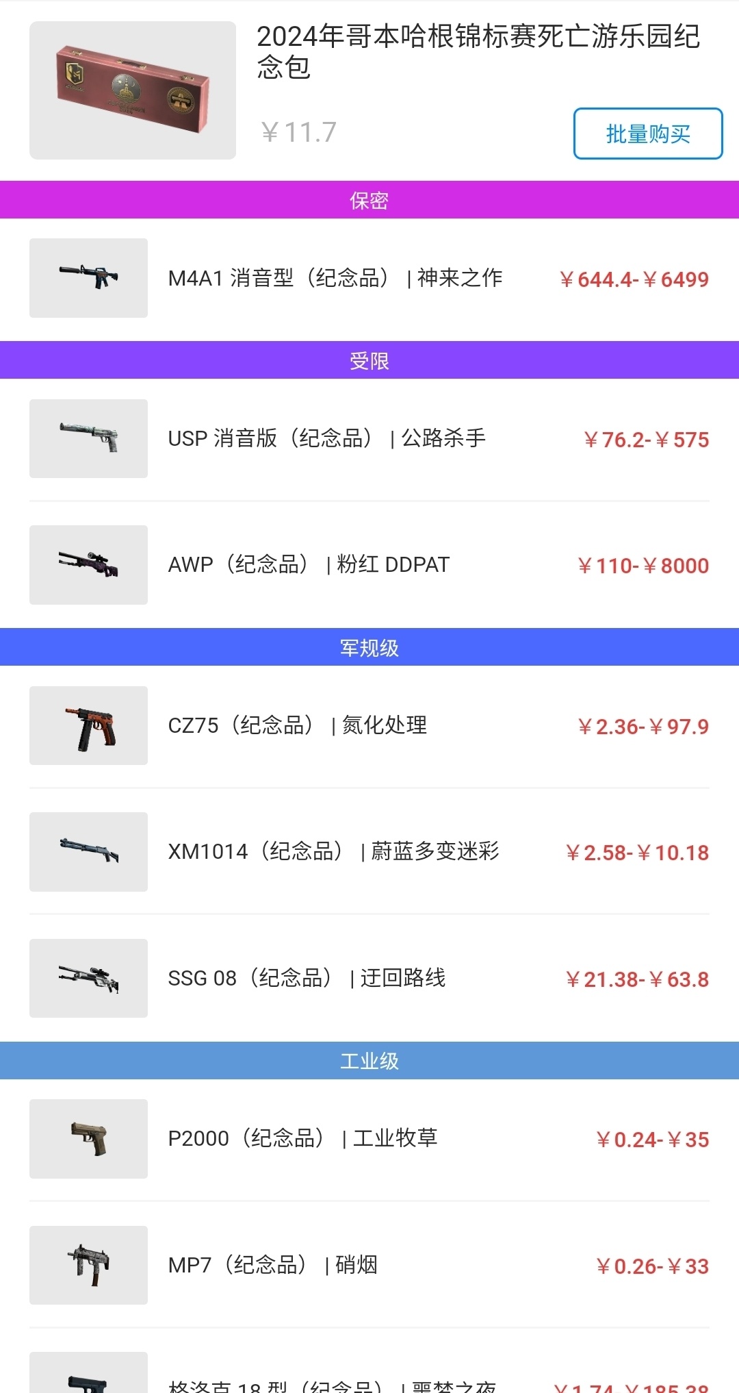 但同等品質下的武器價值更大。比如粉色,則是“核子危機”、“煉獄小鎮”這2個紀念包更高。