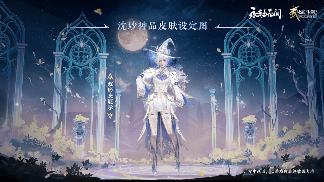 沈妙的雙形態神品時裝【星輝魔紗】擁有白色長袍與黑色短裙兩種形態;擊殺對手的瞬間,還會召來一隻可愛的魔法貓貓飛撲上去,給予會心一擊!