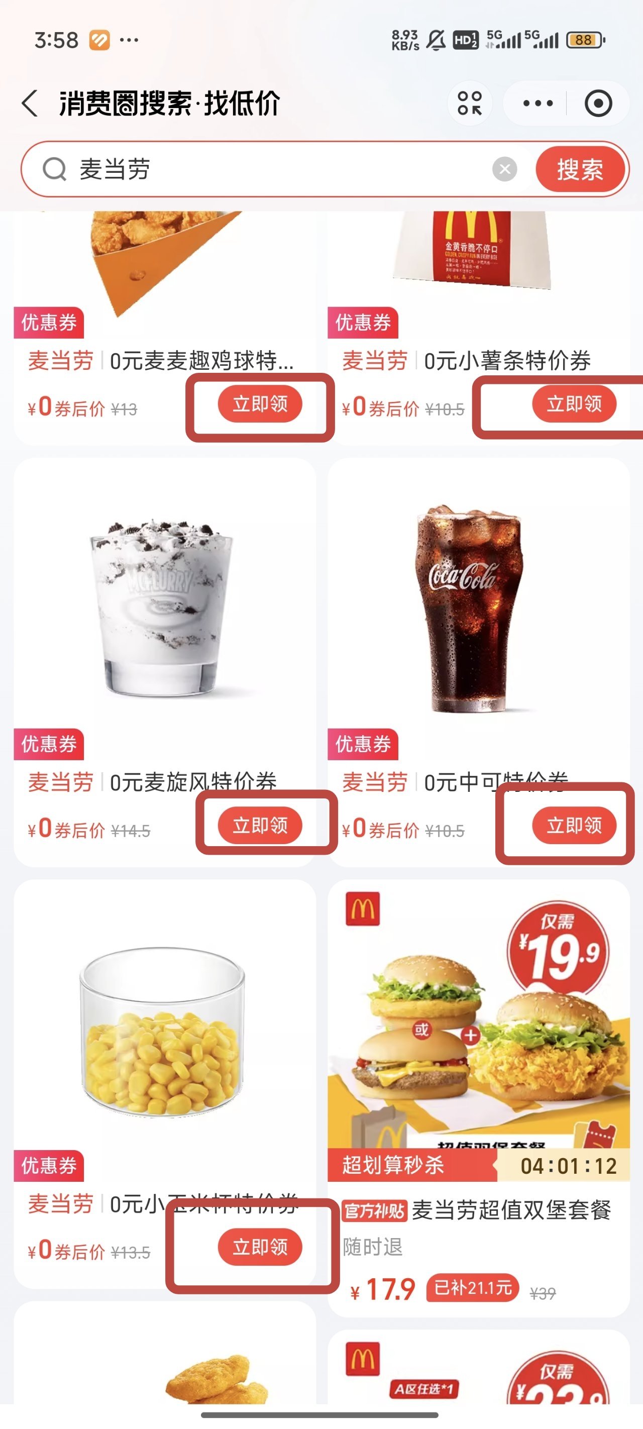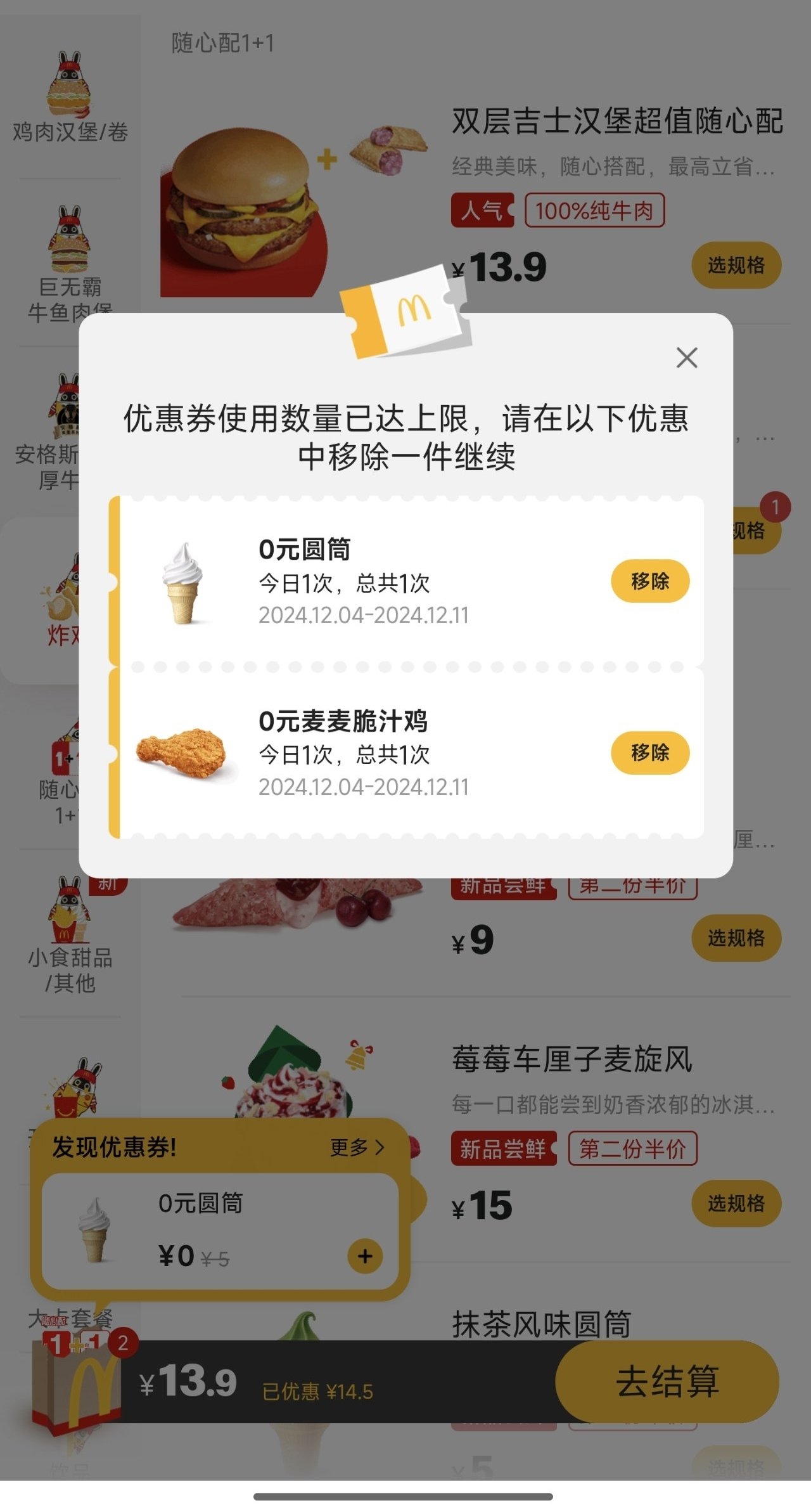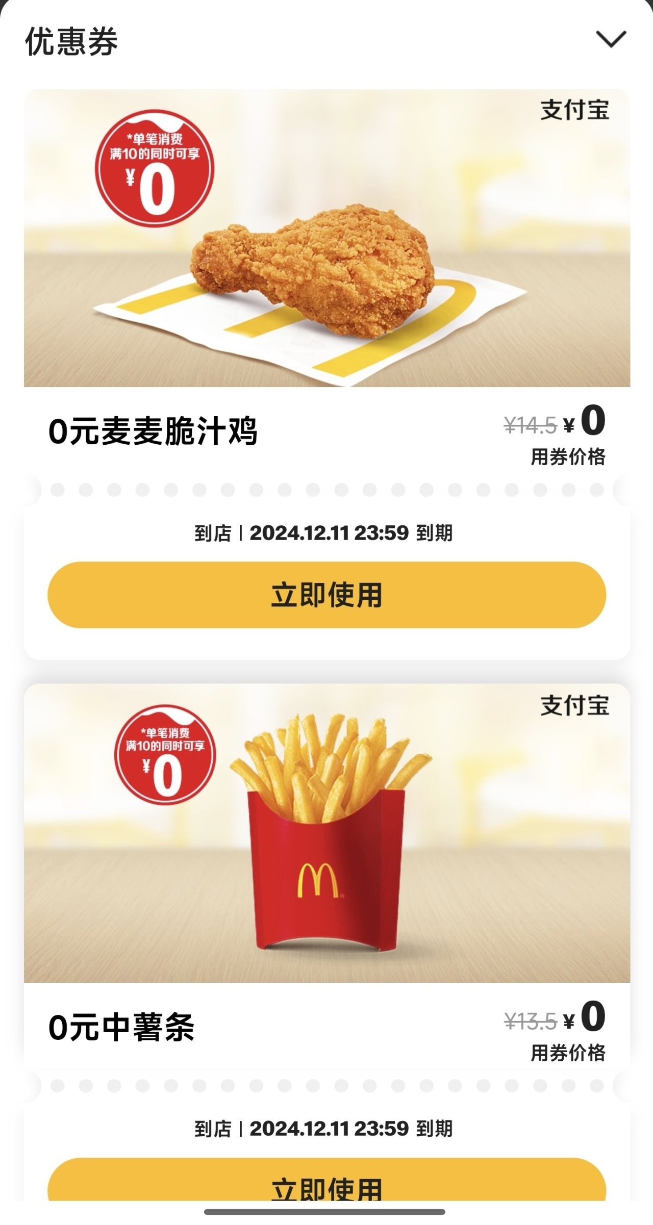 恭喜你發現寶藏啦,0元券有足足三張,包括中薯條,甜筒,麥麥脆汁雞。是不是大喜過望了呢?別急