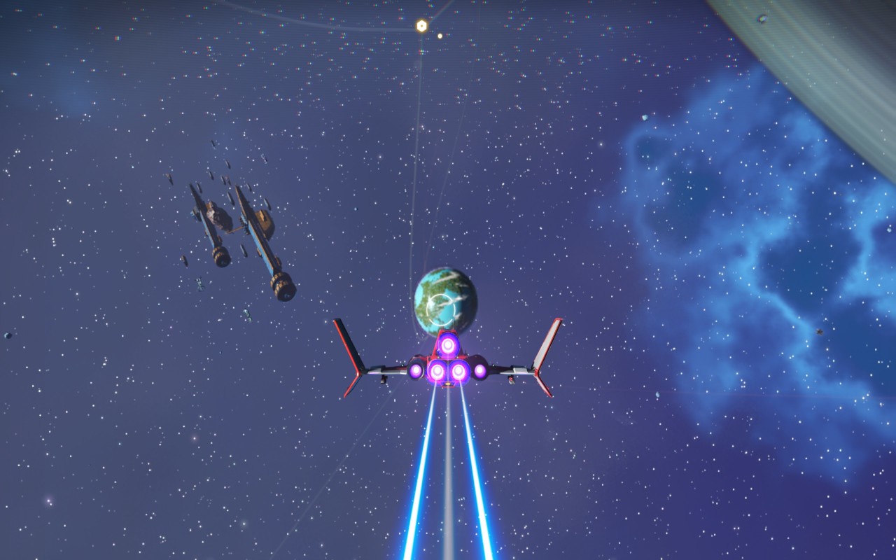 這其實是最能吸引我玩下去的一個方面,你可以說無人深空跟星空和星際公民這類遊戲相比畫質簡直是馬賽克,也可以說無人深空的所有星球都是流水線製作毫無特點,但你真的不能說無人深空給不了玩家最美最沉浸的太空風景