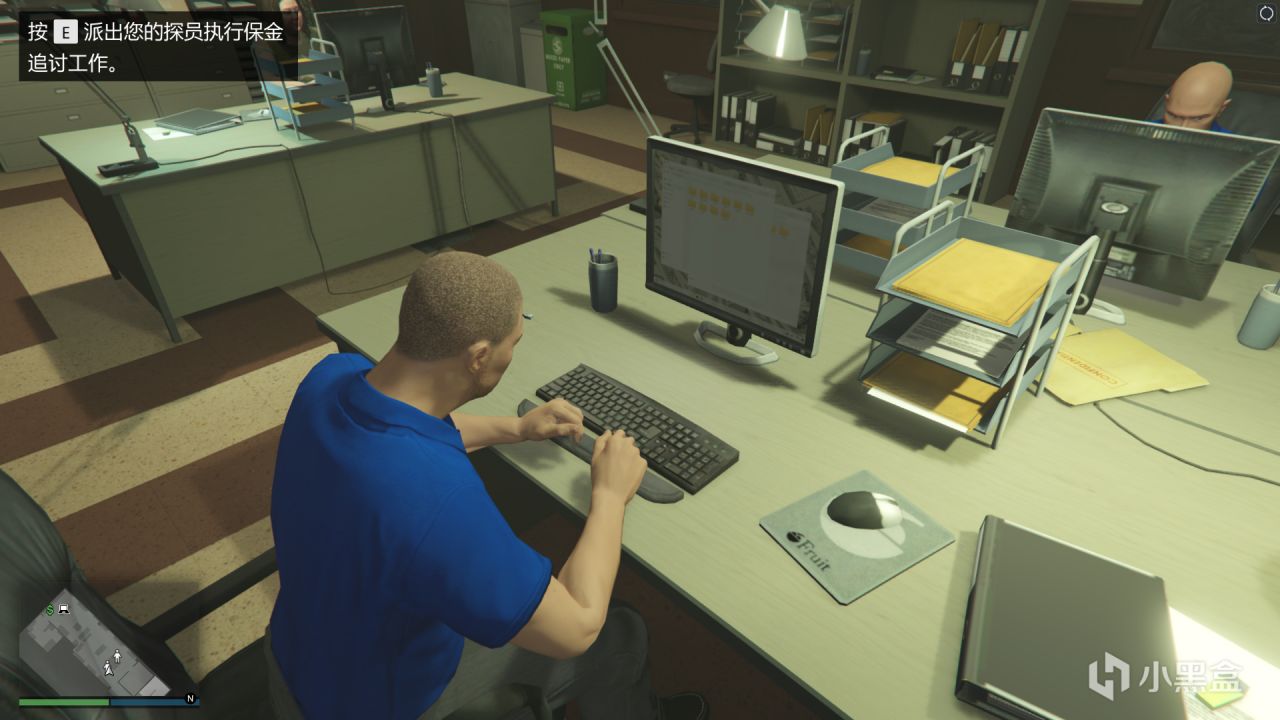 目標在保金辦公室內的電腦被分爲兩種,藍白框的“普通目標”和紅色框的“頭號通緝目標”。