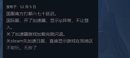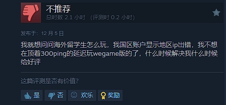 大家吐槽的點就是遊戲鎖 IP,海外的中國玩家無法進入遊戲成爲了差評的主要原因!國內的玩家也不能使用加速器,否則會顯示 IP 錯誤無法進入遊戲: