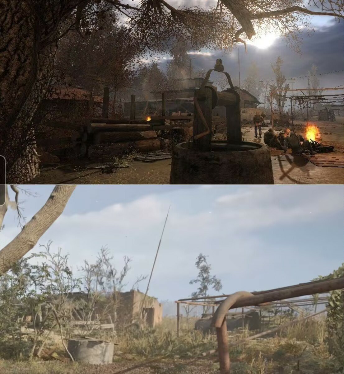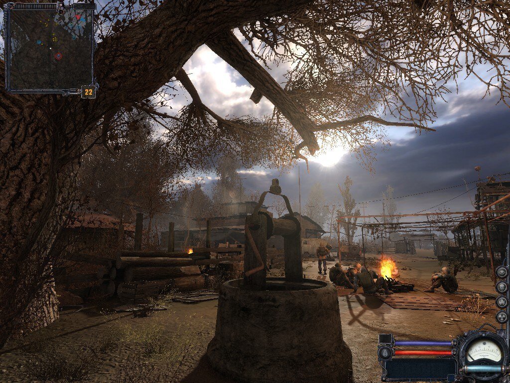 對於潛行者老三部曲有情懷的懷家,可能是懷着這樣的心情去玩遊戲的:想看看以前的的區域變成什麼樣子了。比如說進入潛行者2裏的晴空基地,已經是物是人非,熟悉的井、大樹、鐵桿、地下室,但跟從前相比沒有圍坐在篝火旁熱鬧的人羣了,只留下滿院子的狼藉。