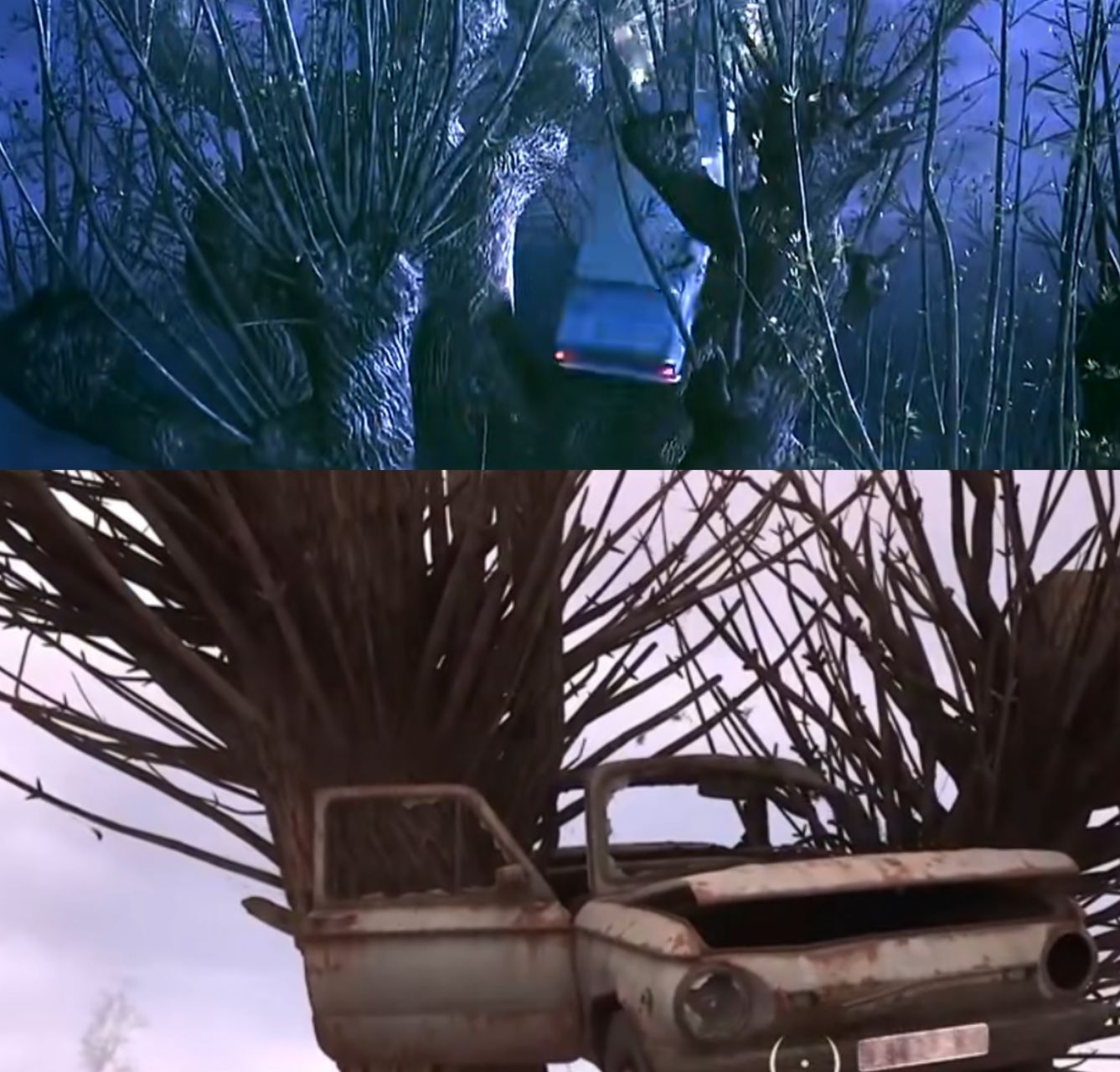 而在潛行者2中可以在右下角沼澤處發現一輛掛在樹上的車,此處的樹與哈利波特中的樹很相似,應該是哈利波特開車失誤卡樹上的彩蛋