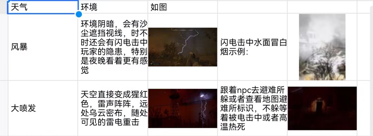 如果經常看現實中的閃電圖片你會發現閃電往往會有一些分支,而其中只有最頭部的最長最明顯,而潛2中的也是如此看起來非常真實,如表格裏的的閃電天氣。