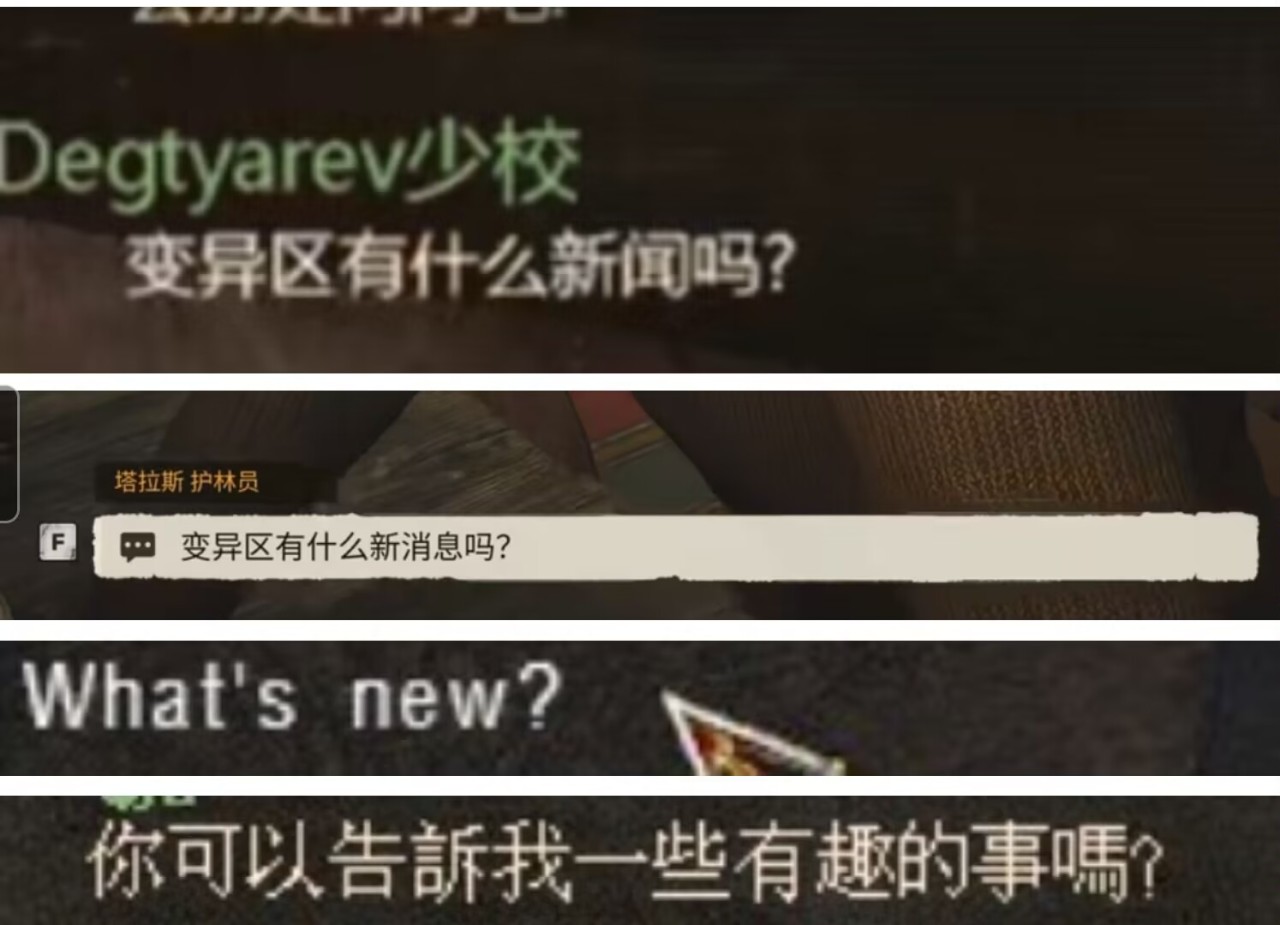 有一點個人要吐槽的是:不愧是潛行者系列的主角,4部曲的主角都有一個共同點就是喜歡問npc特異區有什麼事發生,或者有什麼新聞?