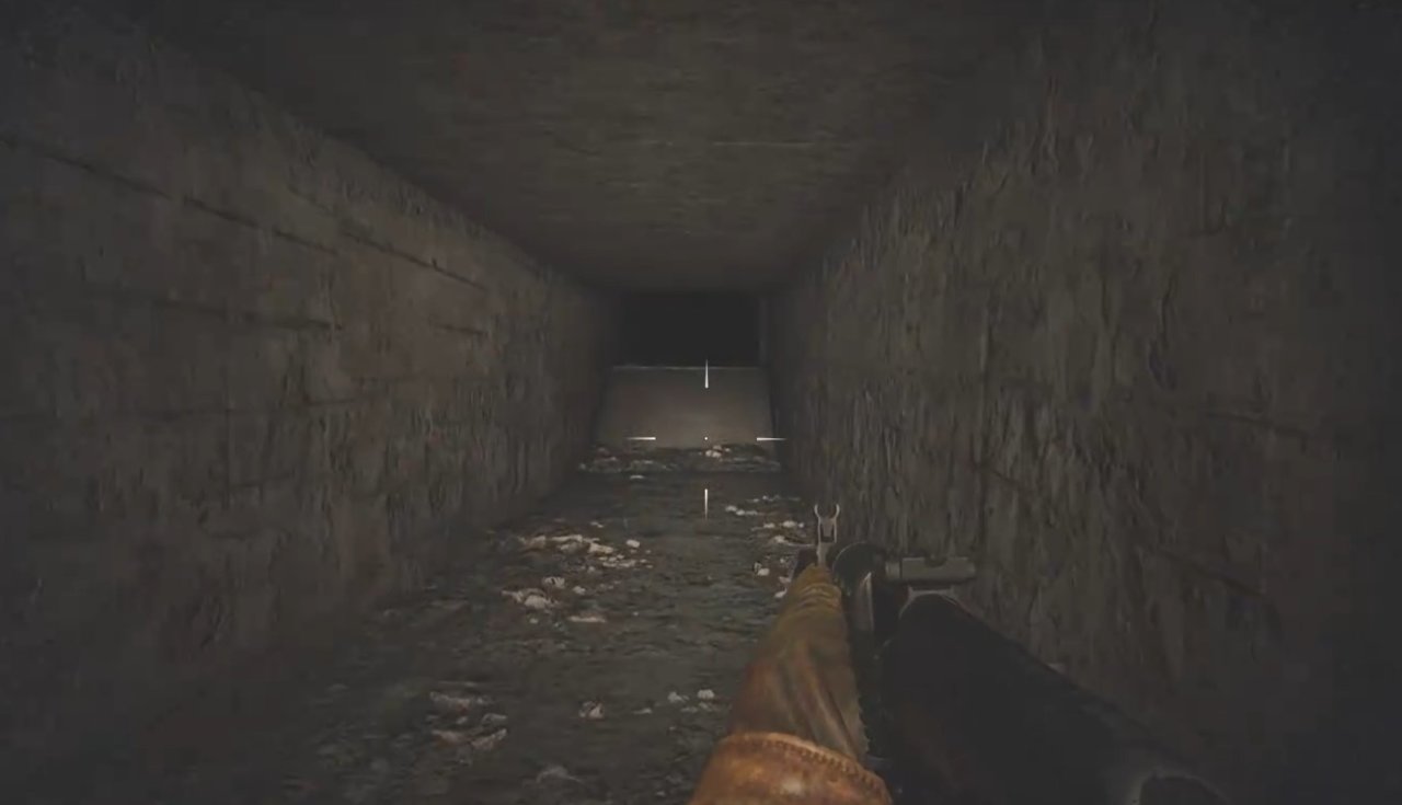 而潛行者2中的一些區域,也很有氛圍感,特別是廢物處理站窄小的地下通道里,空間密閉,且在視野的限制下從而減少玩家的安全感,如果走到像是那種面積大點的地下房間裏,會發現從房頂到地面比正常房間的高度要低,再加上其環境暗,正視前方的情況看不清房頂顯得房子更低了,從而在玩家的視覺上增加了一定的壓迫感。