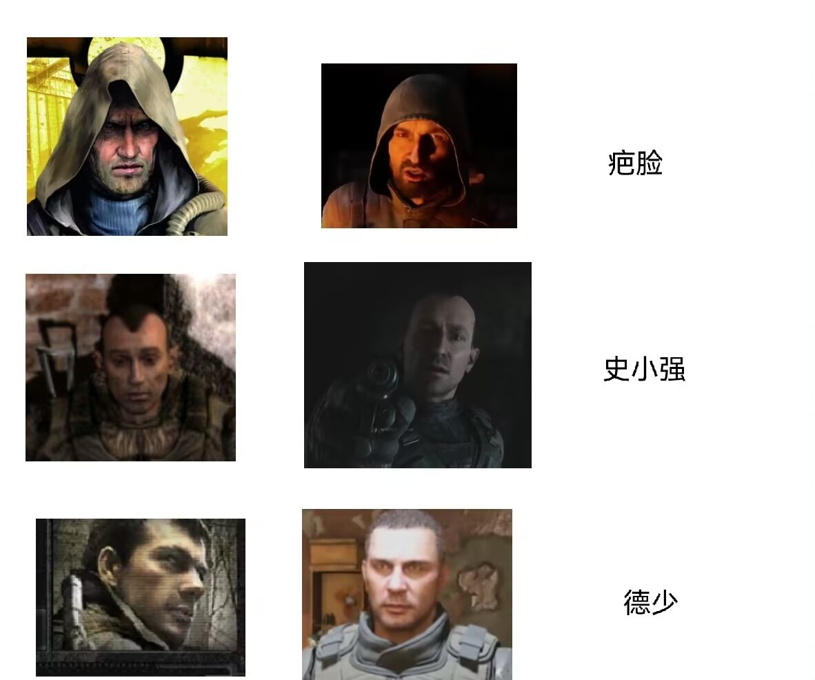 除了地圖情懷還有角色情懷,比如說潛行者1代的主角貫穿老三部曲的重要角色史小強,看起來比10年前更加帥氣了(絕對不是因爲我截圖的問題讓其之前的面部像某一個骨瘦如柴的表情包doge