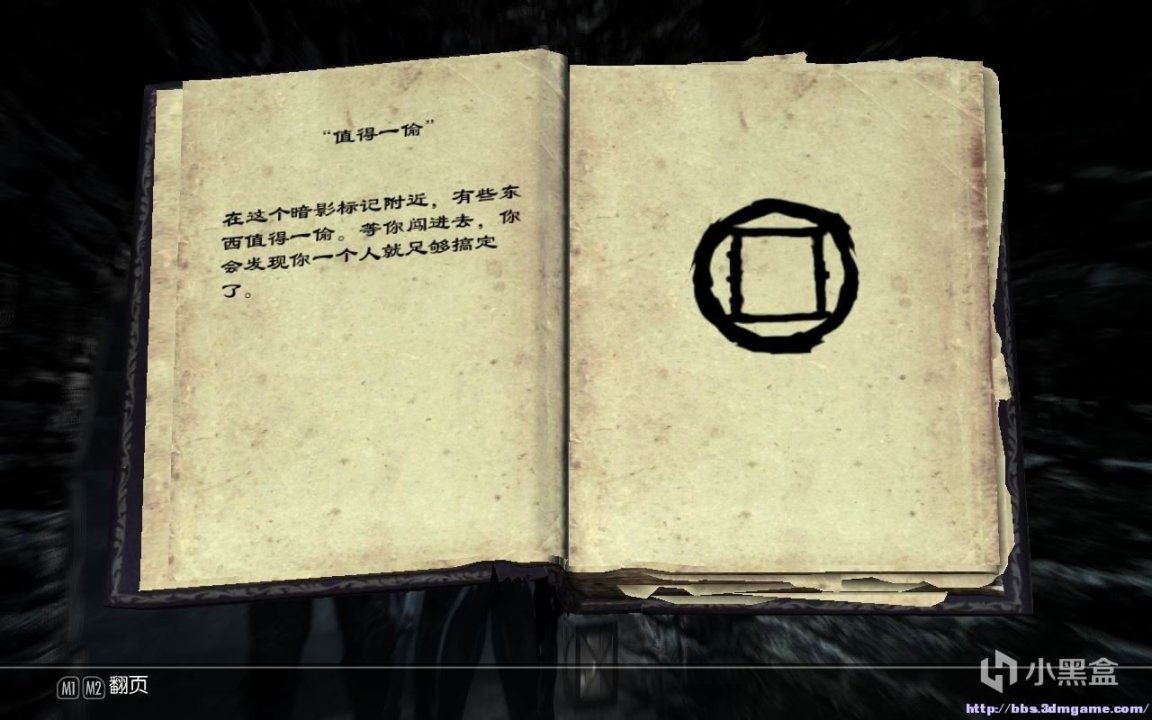 更令我好奇的,则是家家户户门边上时常看到的圆形标记到底是何物。直到我加入盗贼工会,打开《暗影标记》这本梁上君子的护航书,才恍然大悟。正如早先现实中有贼会去富人家踩点门前做标记,上古卷轴中的盗贼们也是这么做的。暗号被简单分为工会、安全、危险、逃生之路、受保护、销赃人、盗贼藏物、值得一偷和空无一物九种,每种标记都大有故事可讲。带着暗影之神的祝福,神偷们背身潜入漆黑的夜晚。