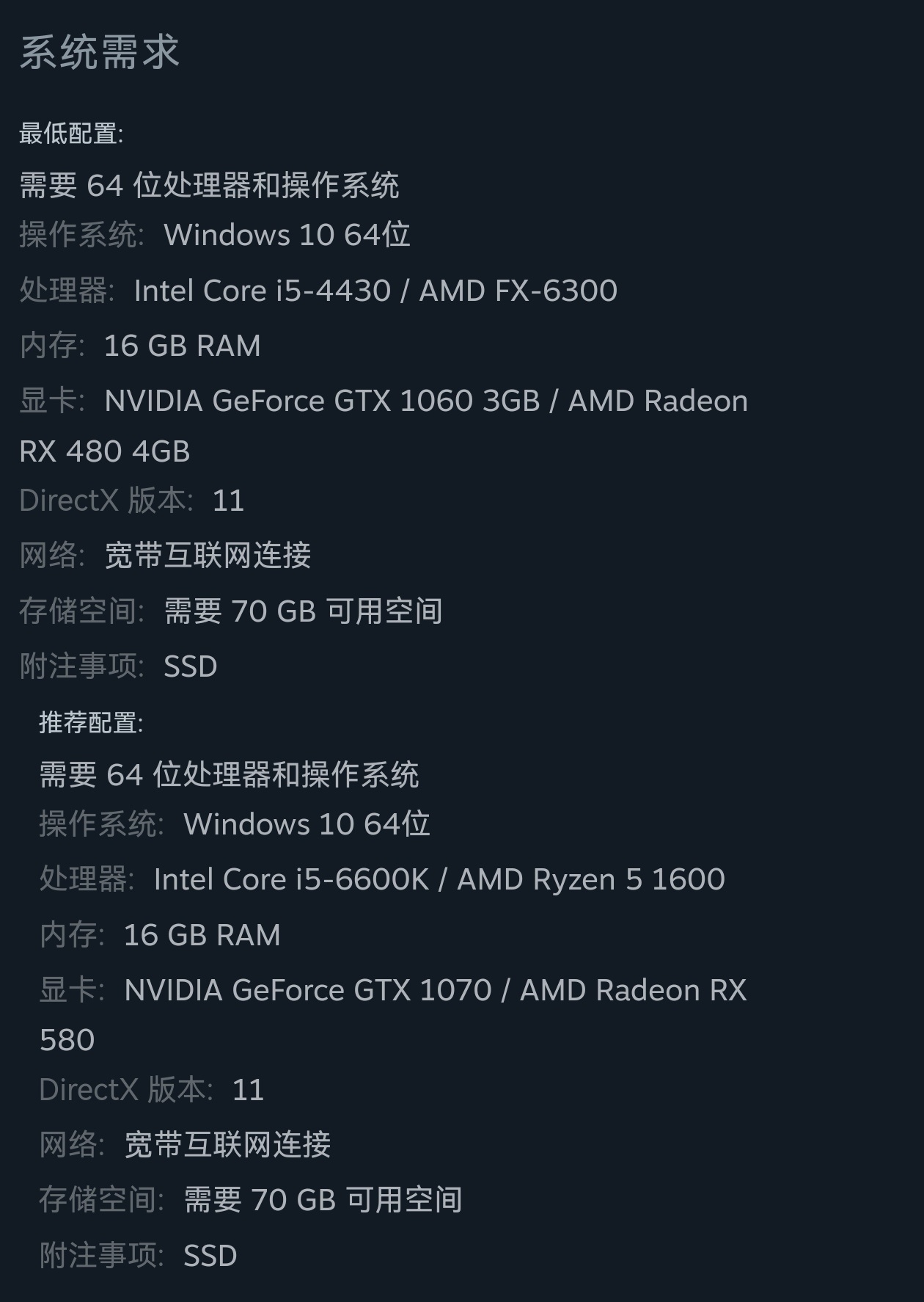 游戏配置要求: