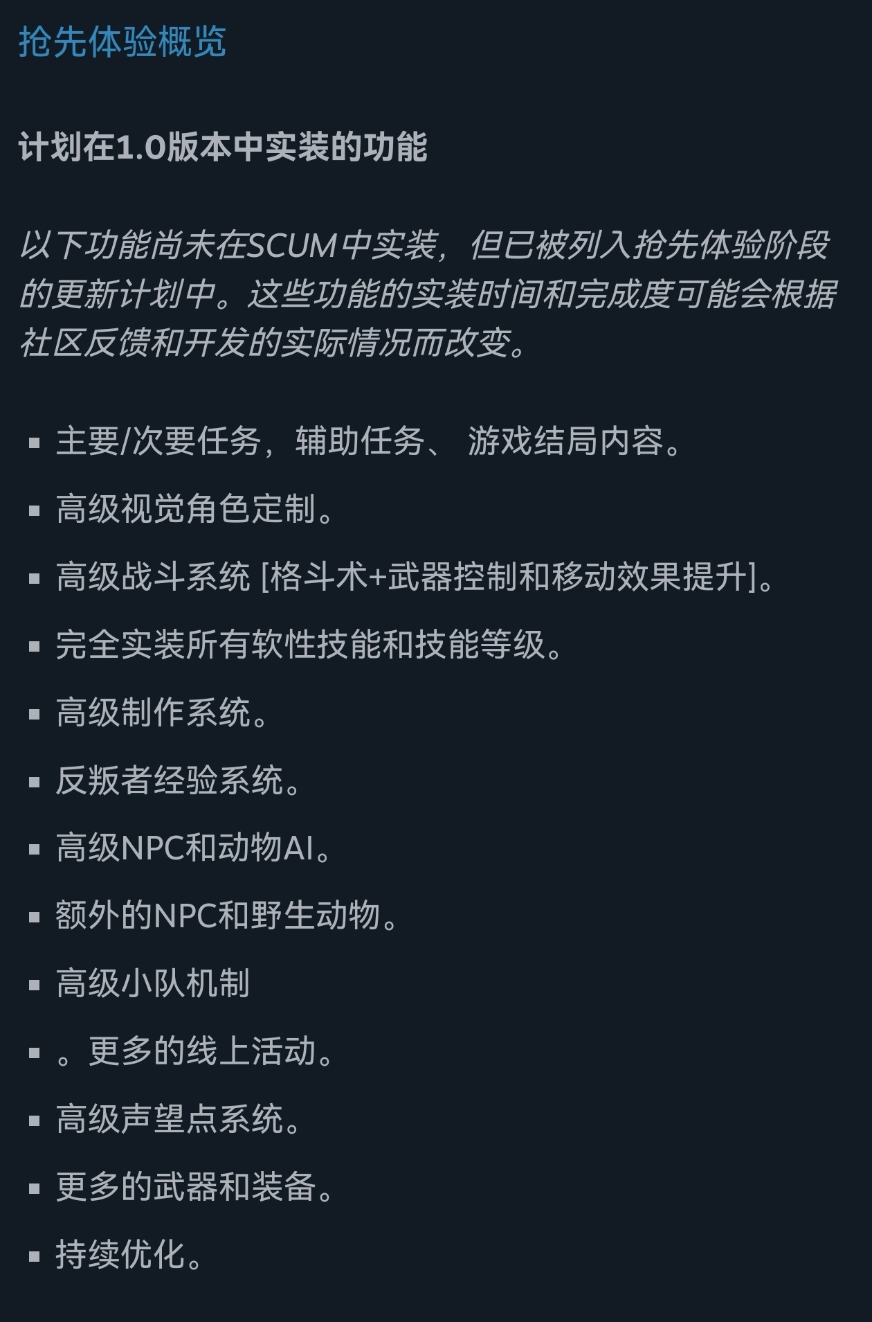官方计划在1.0版本中实现以下功能。