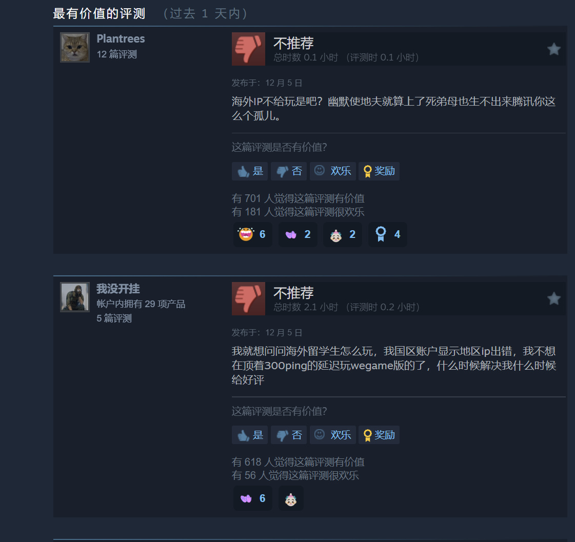 不過有玩家反饋,不少好評的賬號旗下並沒有遊戲庫存,疑似水軍刷好評行爲。