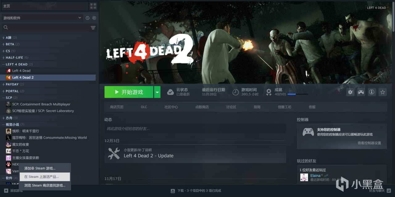 打开Steam客户端点击右下角“添加游戏--在Steam上激活产品”,输入之前领取的激活码即可,刷新库存就会出现游戏《What the Fog》。