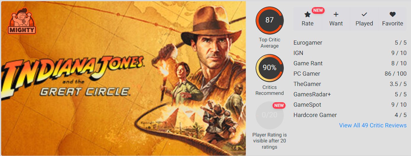 《夺宝奇兵 古老之圈》是不可或缺的印第安纳·琼斯系列游戏。它捕捉了电影中的视觉、音效与灵魂,讲述了一段引人入胜的故事,并出人意料地侧重于潜行与自由探索,即便在某些设计细节上略显不足,也依然能让玩家感到满足。最重要的是,MachineGames 成功围绕主角设计了一款游戏;它通过将即兴潜行与战斗相结合,并采用快速且灵活的风格,体现了印第安纳·琼斯坚韧不拔的精神,这种风格独树一帜。虽然它在各方面的表现可能不如该工作室的《德军总部》系列游戏那么出色,但《夺宝奇兵 古老之圈》仍然时常带给玩家惊喜。