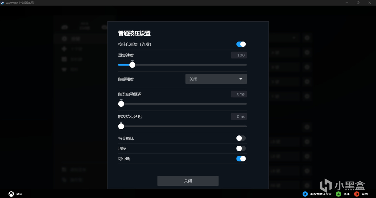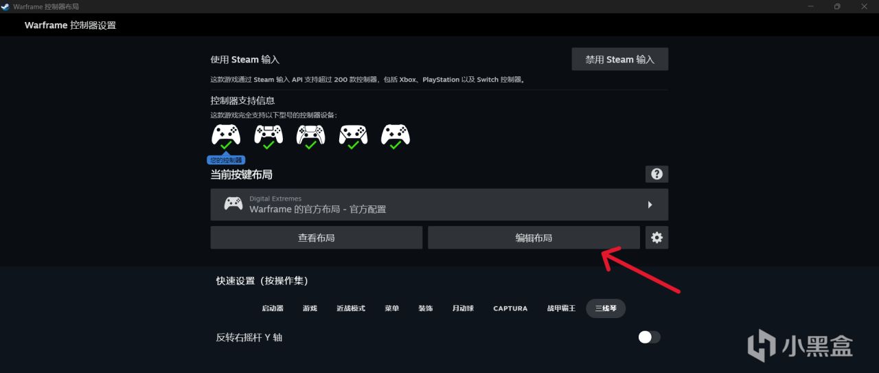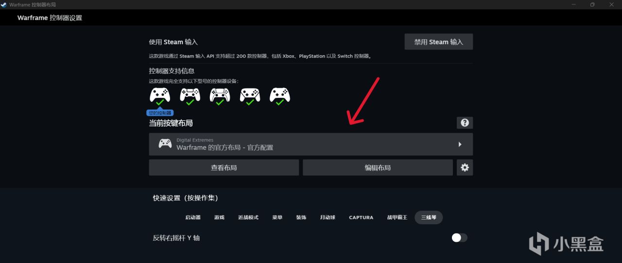 右上角的關閉steam輸入如果你看了前文就會理解,關閉的話我們就不能進行復雜的設置。