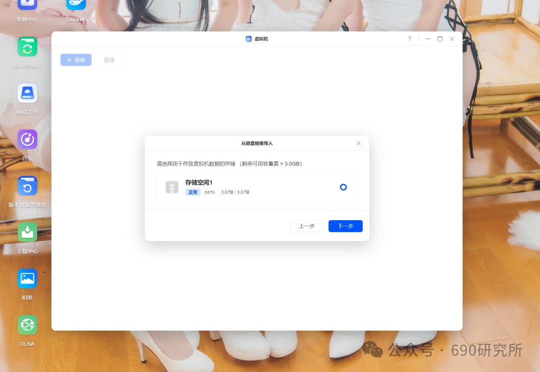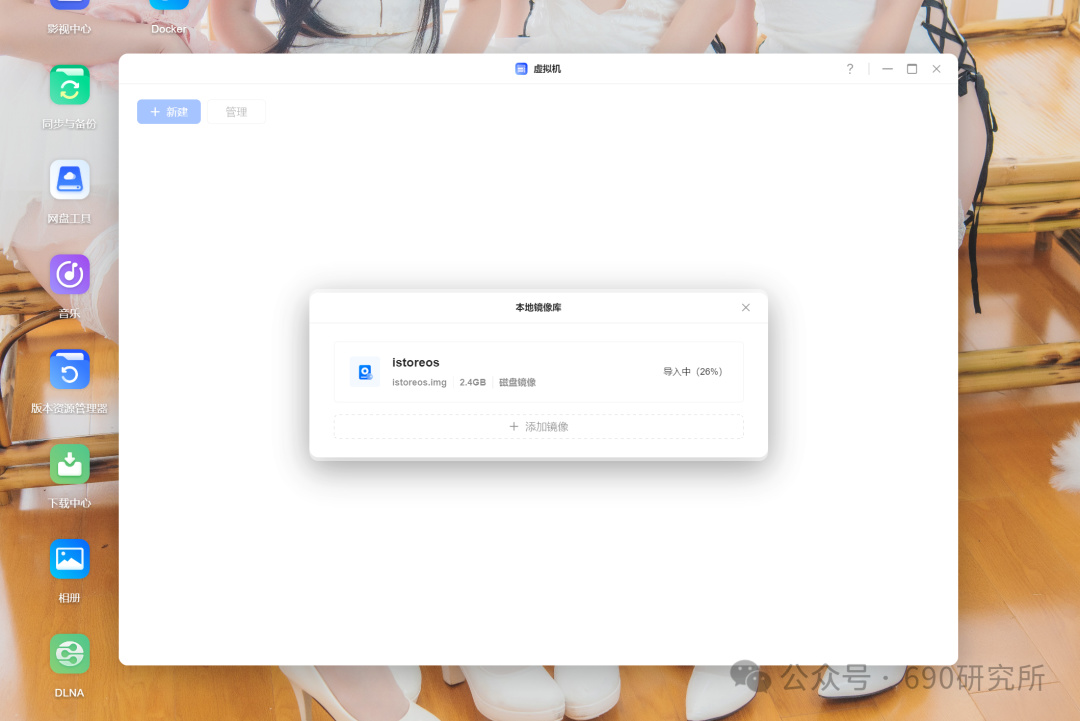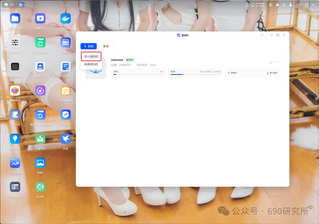 在绿联DXP4800内打开虚拟机,选择左上角的新建,导入虚拟机。如果找不到虚拟机的话,记得去应用中心内安装虚拟机。
