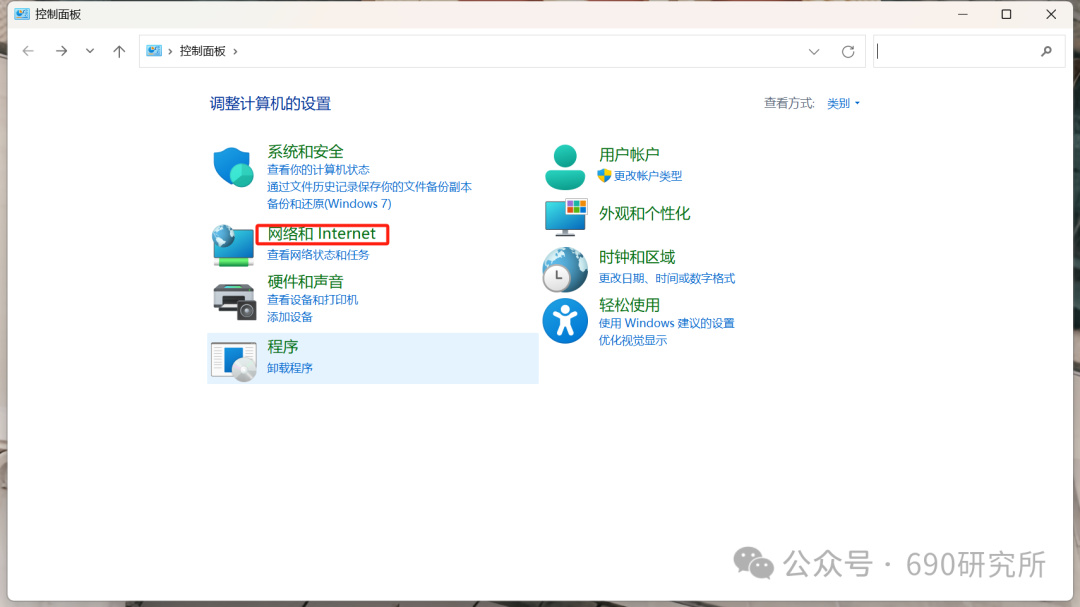 win电脑搜索栏搜索“控制面板”,选择“网络和internet”