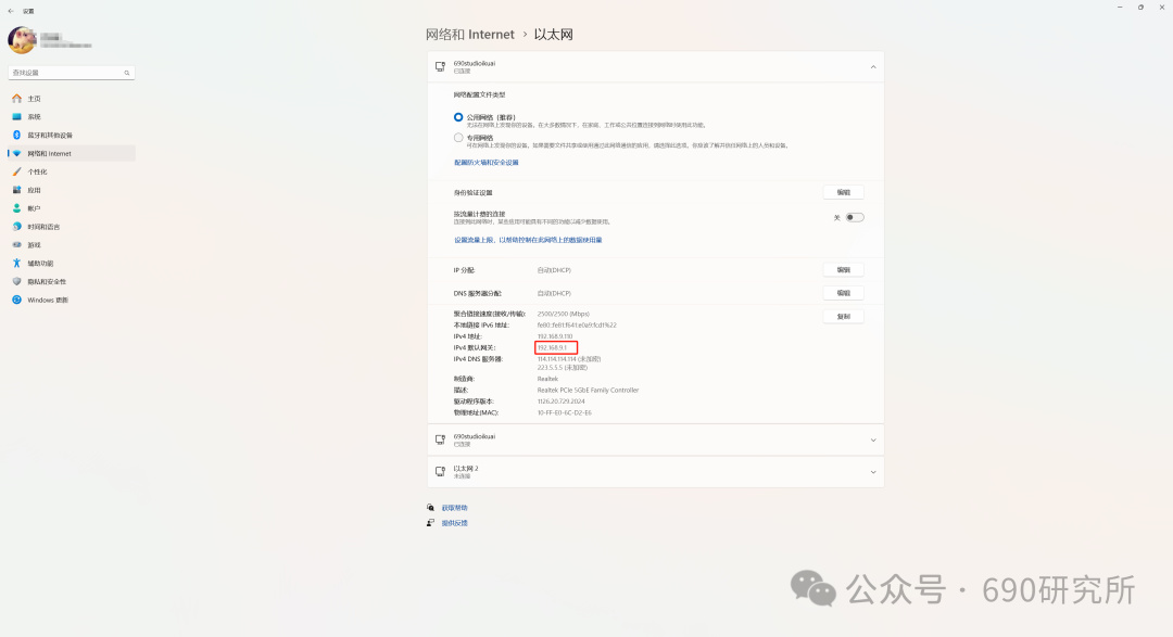 这里我也来简单说下,打开windows的设置,打开里面的网络和Internet,选择以太网,看到下面的IPV4默认网关,这个前三位就是这里的前三位了。第四位根据自己的喜好进行修改,只要不与局域网内的设备有冲突就行。