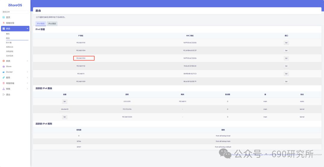 这里修改下咱们istoreos的ip。这个IP前面的三位根据自己家庭环境情况修改。如何确定前三位是什么呢?