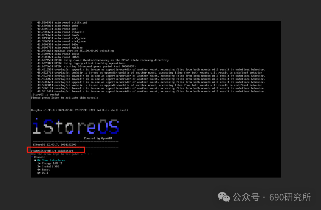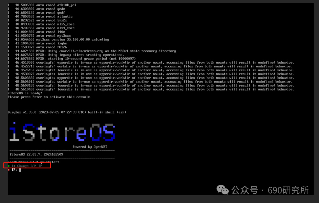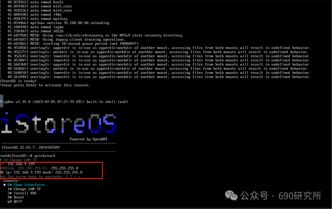 进入istoreOS的后台,敲击任意键即可进入控制台