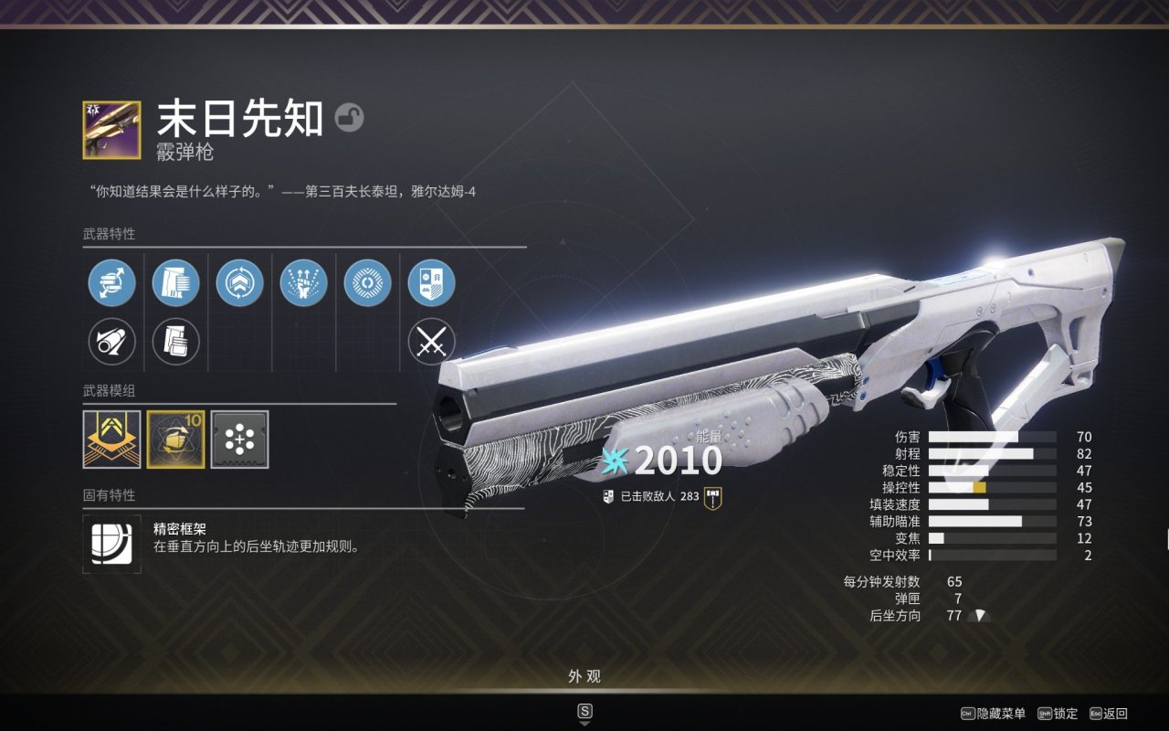 模組方面先說賽季模組,第二部分更新後有了新的賽季模組,其中前四個模組都是近戰增益型的,所以要把最後一排的前四個點亮,在近戰清怪過程中護甲充能不知不覺就滿了,能量球產量也不需要擔心。踢綠蛋的時候還可以喫到緊急信號彈,這樣更不用擔心缺護甲充能了。最後把霰彈槍反屏障的模組點亮,賽季模組就成型了。