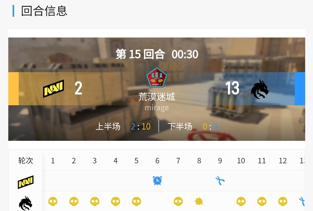 上半场结束,NAVI以2:10大比分落后于绿龙。