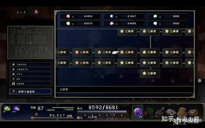 其無論是練功,還是裝備驅動的玩法都無比充實且令人上癮。例如,每一把武器、盔甲和盾牌如果刷滿熟練度都有獨特獎勵、很多時候甚至直接就是解鎖新的技能;又比如,甚至連晶體數值成長這個簡單的“收集足夠點數-加數值”的系統,都被做成了一個迷你小迷宮;遊戲更是完美恰當地在強度巨幅提升的新章(新章並非傳統意義上的二週目,而是故事的終章,這和遊戲敘事有關,這裏不展開說了),引入了隨機掉落的裝備盤系統,在強化裝備的同時,帶來了幾個新章的畢業級構築路線,讓玩家在本篇通關充分成長後還有進一步的精進空間和爽點。
