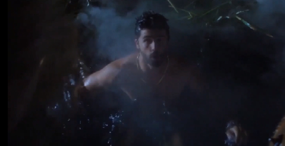 二人逃离小屋后,络腮胡跳进了水中,并且劝女主也跳下来。